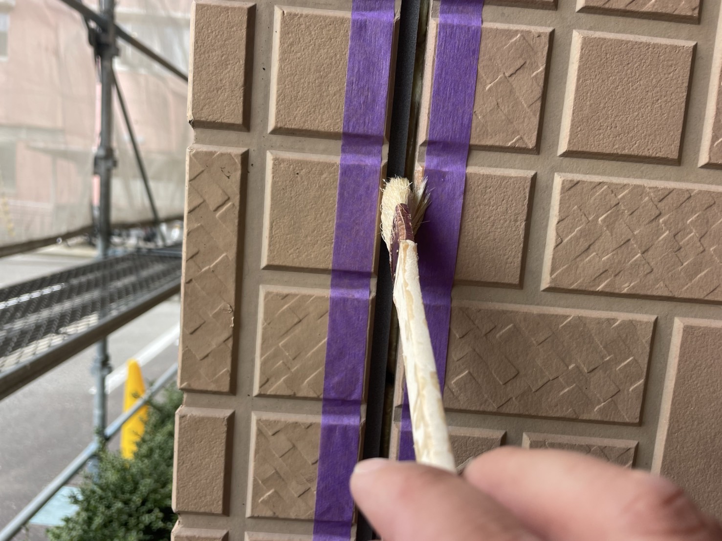次に、プライマーを塗ります。プライマーはシールと建材を密着させ接着性を高める重要な役割を果たします。