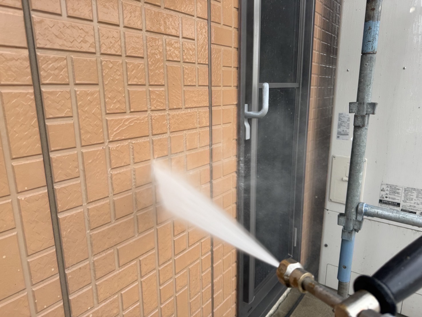 はじめに、高圧洗浄を行い汚れを落とします。塗装の仕上がりを左右する大事な作業です。