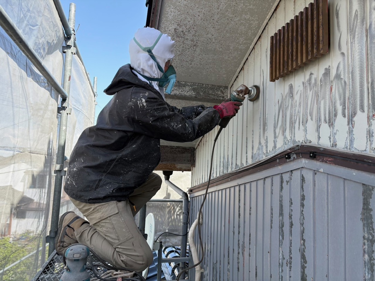 ケレンとは、新しい塗料を塗る前に行う下地処理のことで、古い塗膜の浮きやサビ等を徹底的に取り除き、塗装面をきれいに整える作業です。