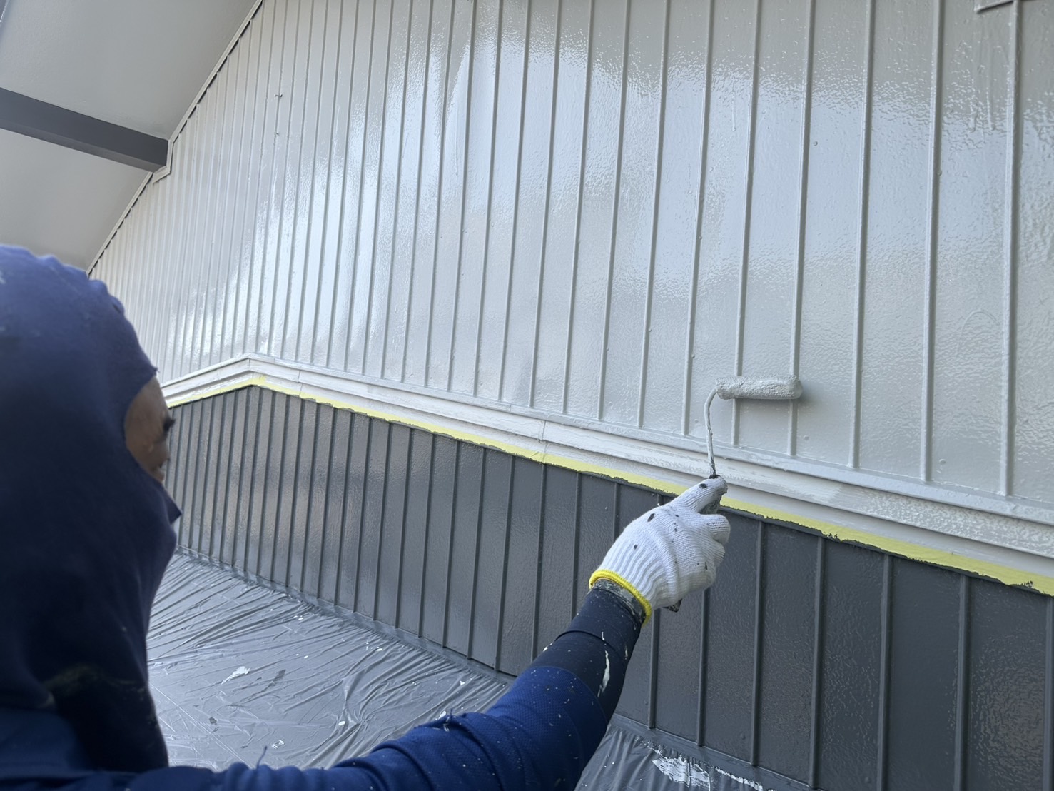 次に、1液ファインフッソUVを用いて中塗り・上塗り塗装をしていきます。