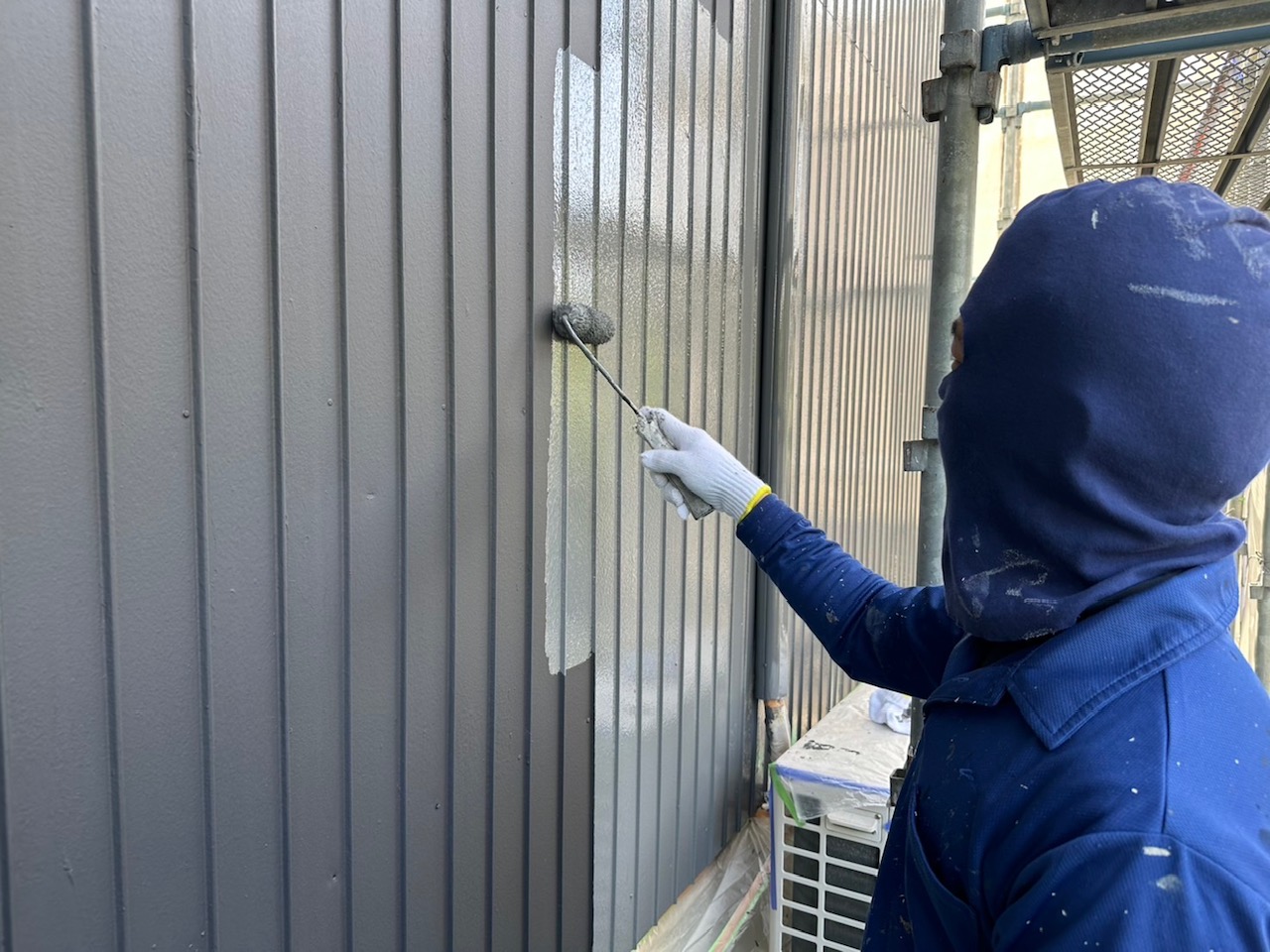 まずは下塗りとしてエポキシプライマーを塗ります。エポキシプライマーはプライマーの一種で、主成分にエポキシ樹脂を使用している点が異なり、特に金属素材や錆びた素材に対して高い密着性と防錆効果を発揮します。