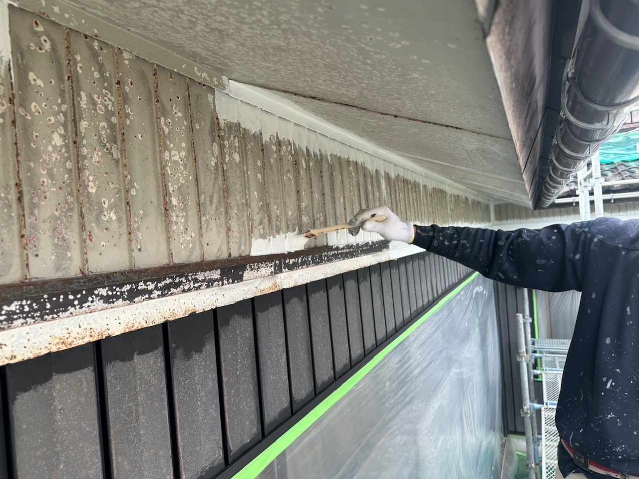 軒裏・破風板などの付帯部分も同じようにエポキシプライマーを塗ります。
