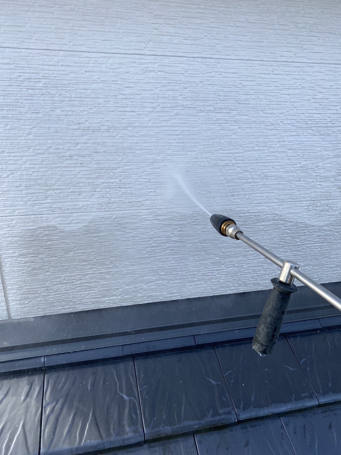 初めに高圧洗浄を行い、外壁表面の汚れを落とします。