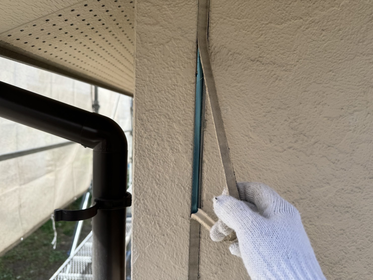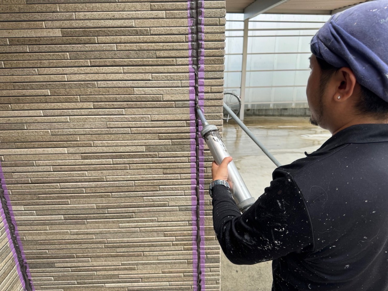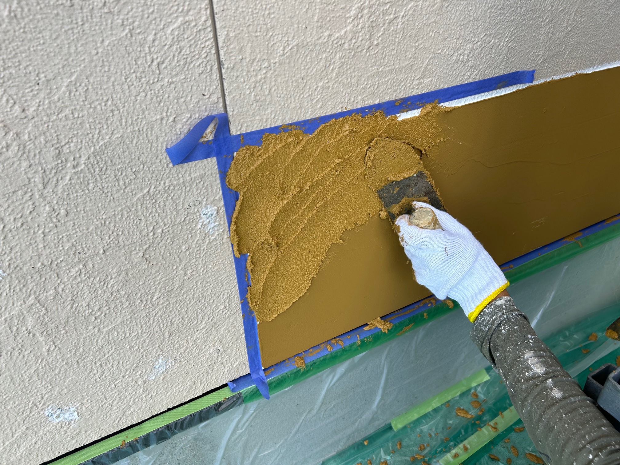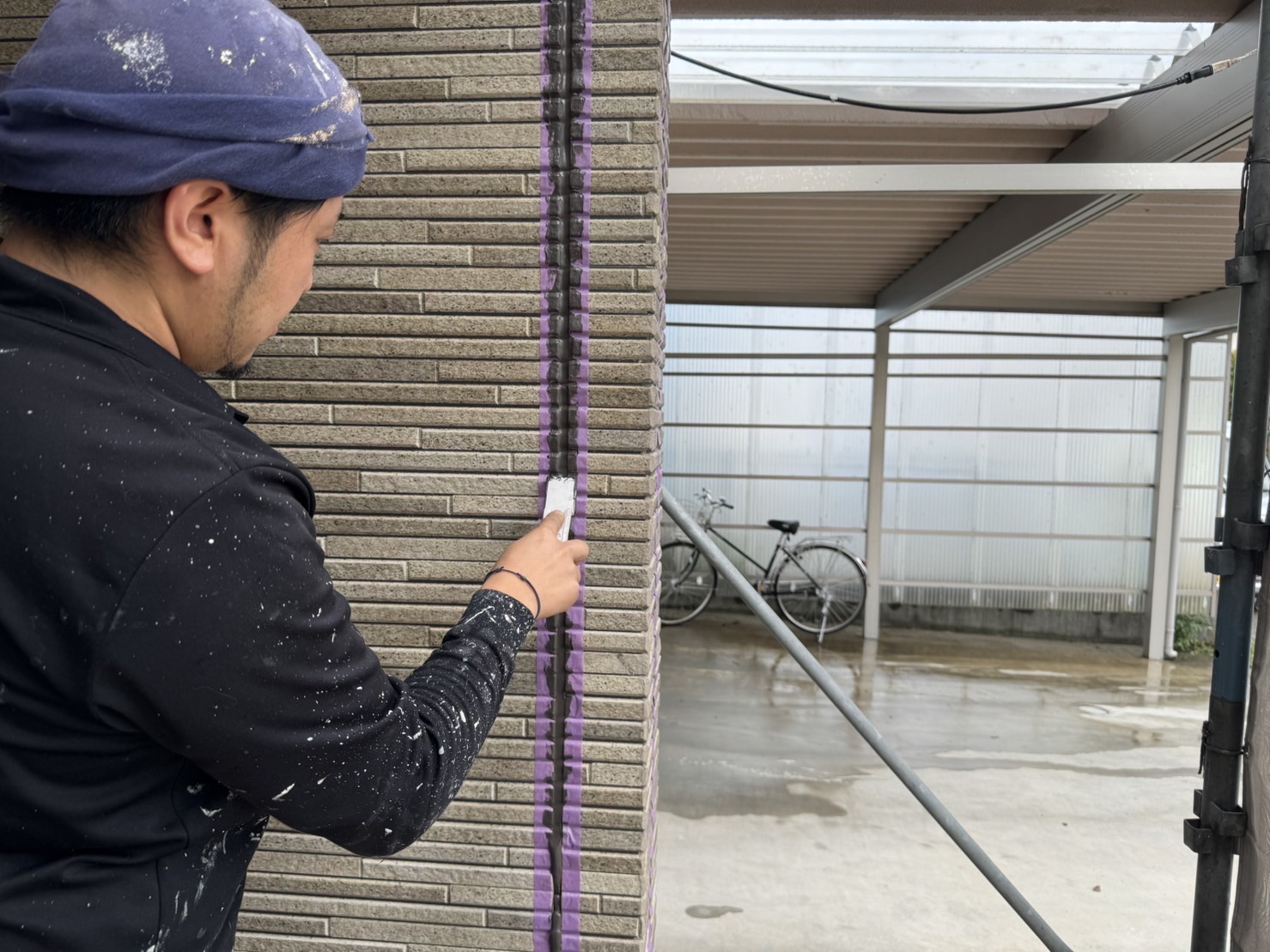 続いて、シーリング材を充填してへらで均していきます。外壁塗装専門店安井創建では「オートンイクシード」という高い耐久性・耐候性をもつシーリング材を使用しています!