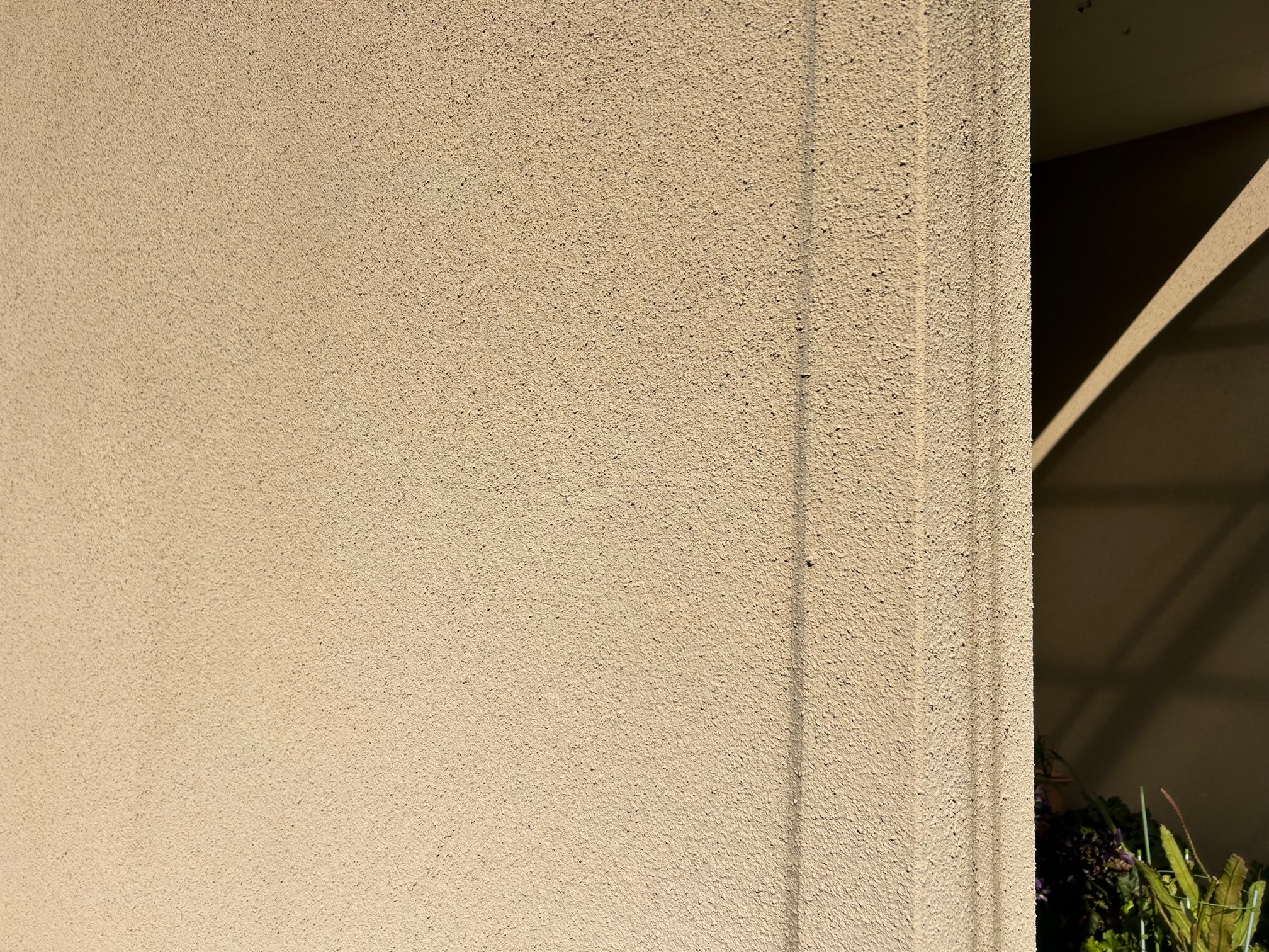 リシン吹付の面も模様のあるサイディングの面も、元の質感を活かした塗装になっています!
