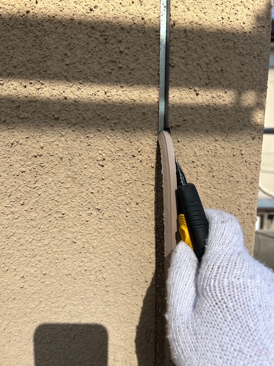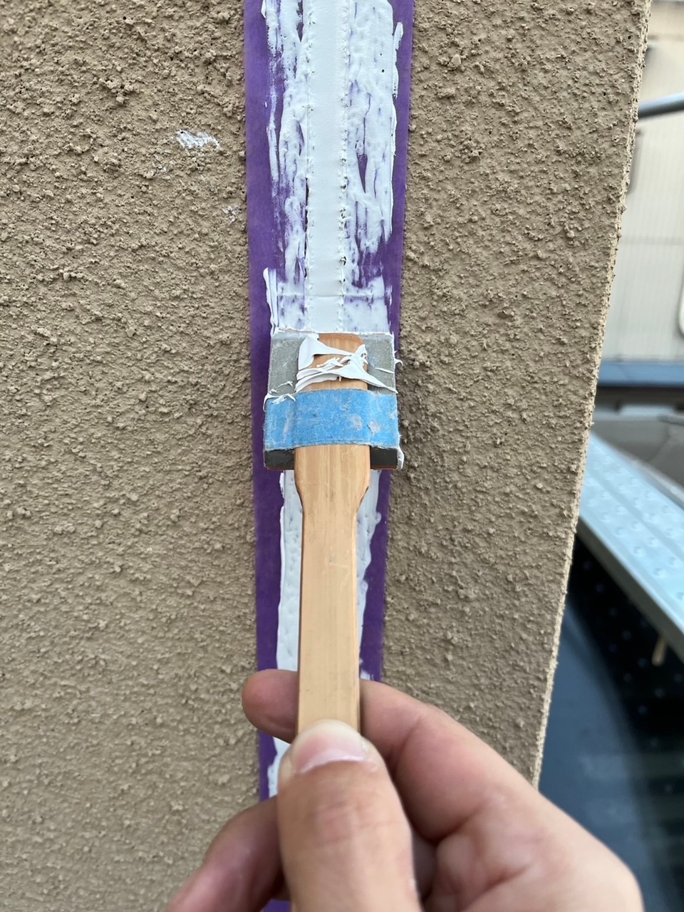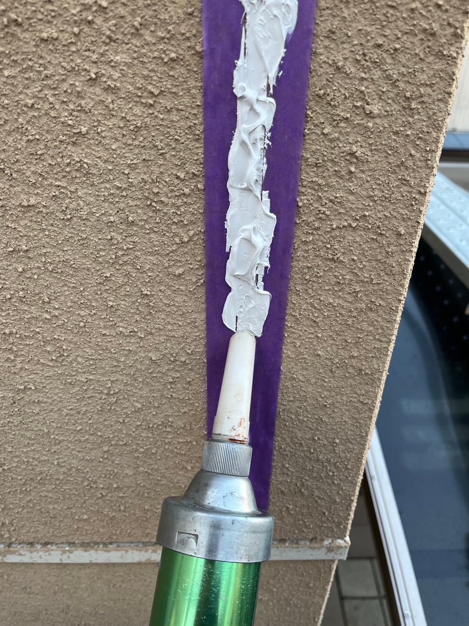 そして、シーリング材を充填してへらで均していきます。外壁塗装専門店安井創建では「オートンイクシード」という高い耐久性・耐候性をもつシーリング材を使用しています!