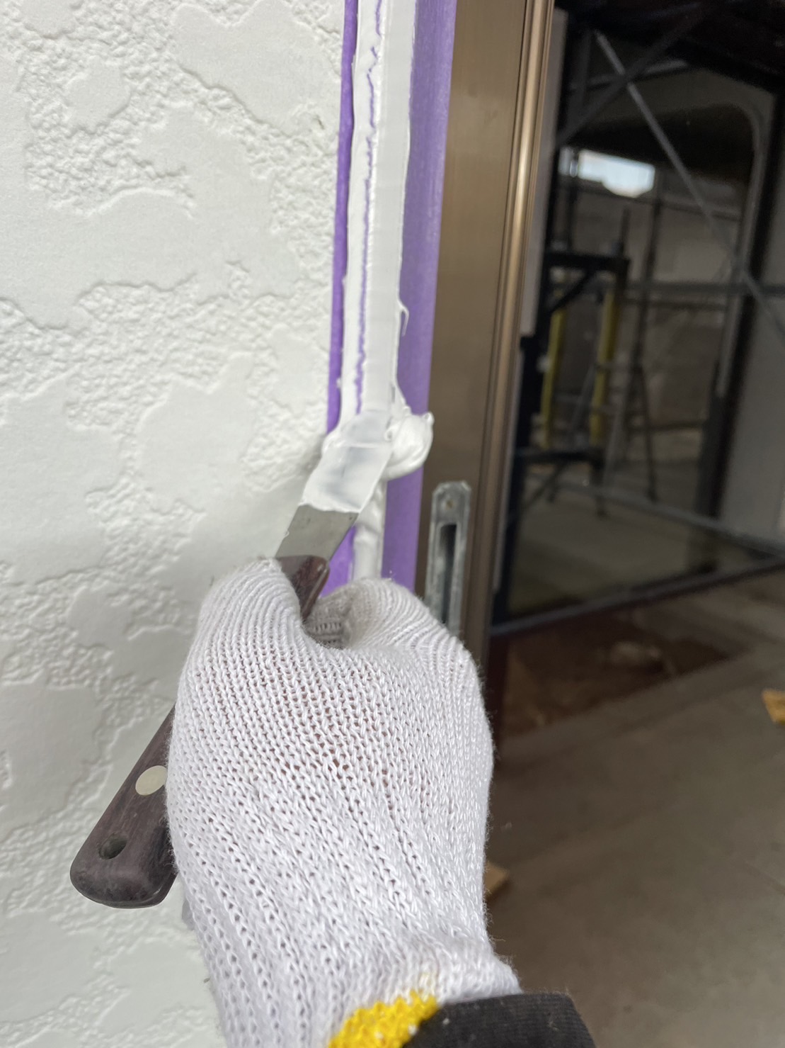 そして、シーリング材を充填してへらで均していきます。外壁塗装専門店安井創建では「オートンイクシード」という高い耐久性・耐候性をもつシーリング材を使用しています!