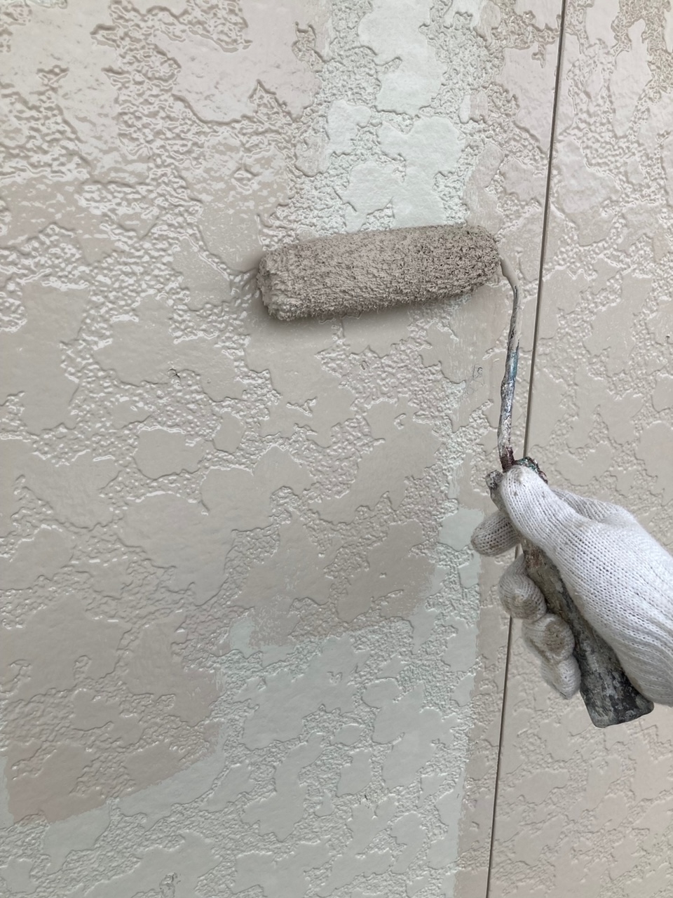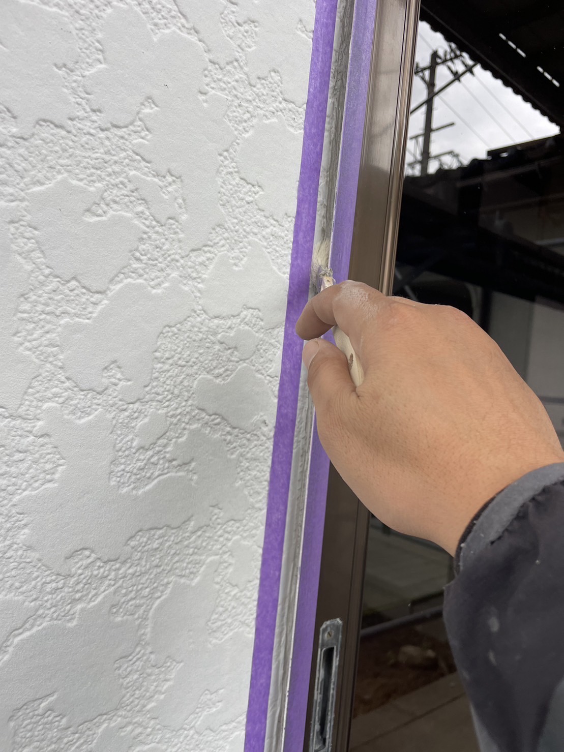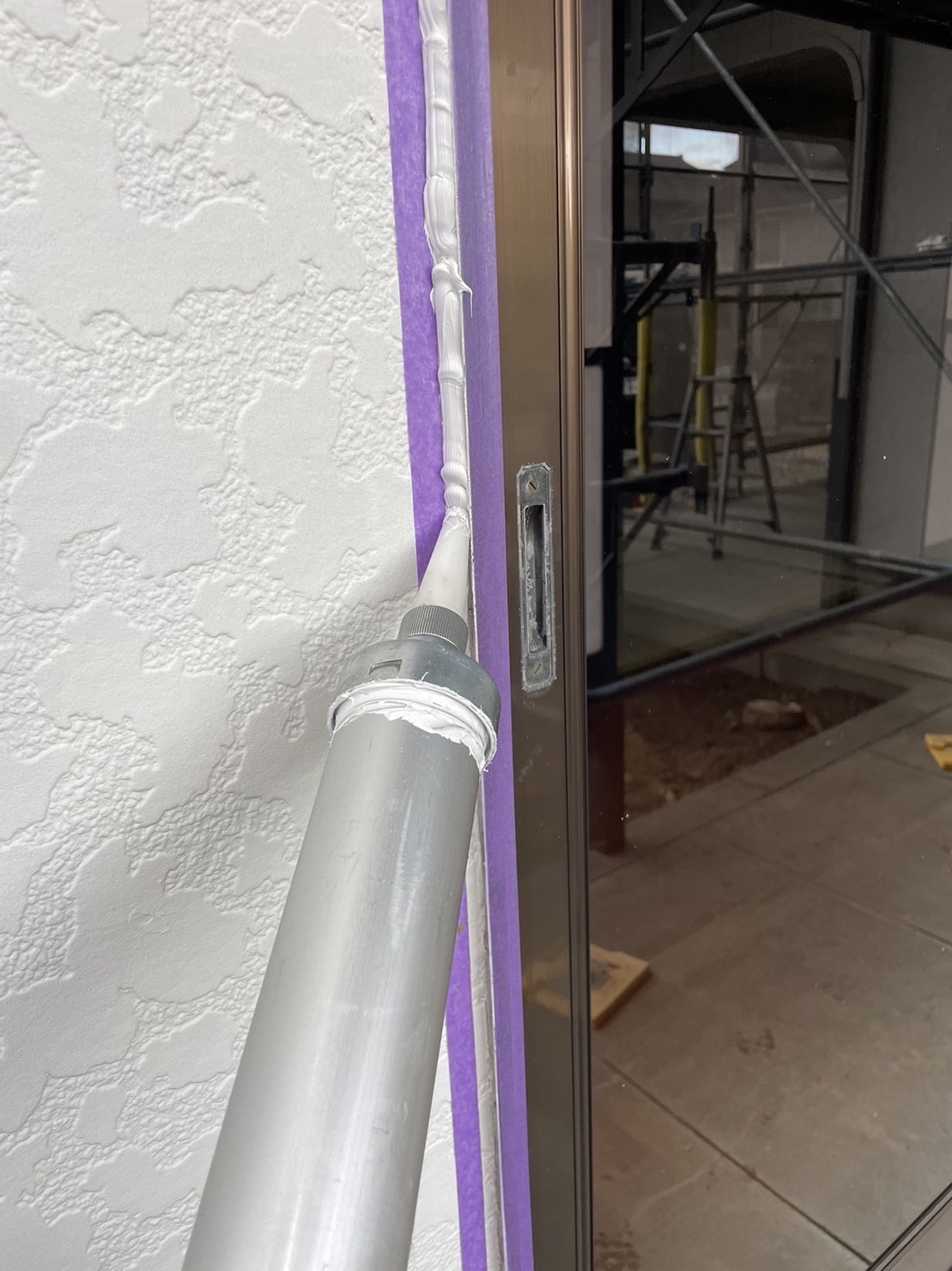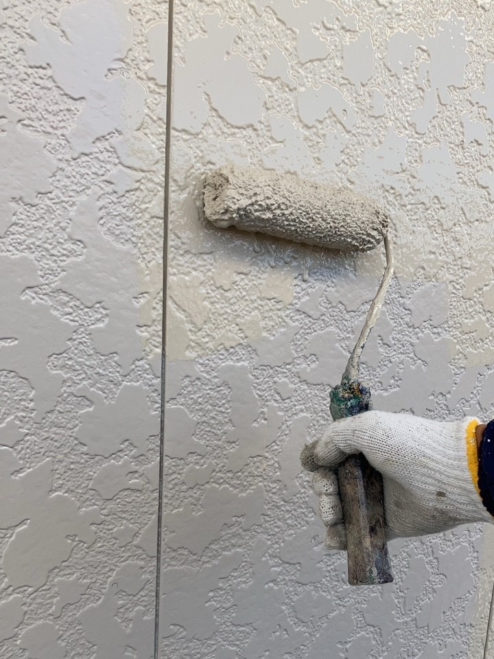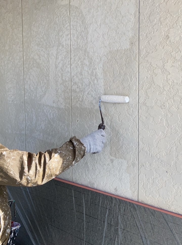 今回は打ち増しでの施工です。マスキングをして、プライマーを塗ります。プライマーはシールと建材を密着させ接着性を高める重要な役割を果たします。