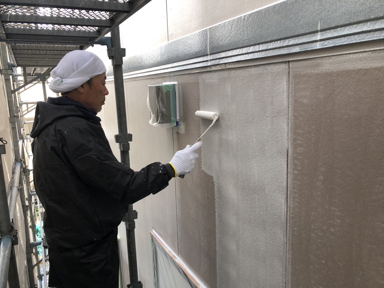外壁はプライマー塗装をして、パーフェクトセラミックトップGを使用した中塗り・上塗りの3回塗りです。