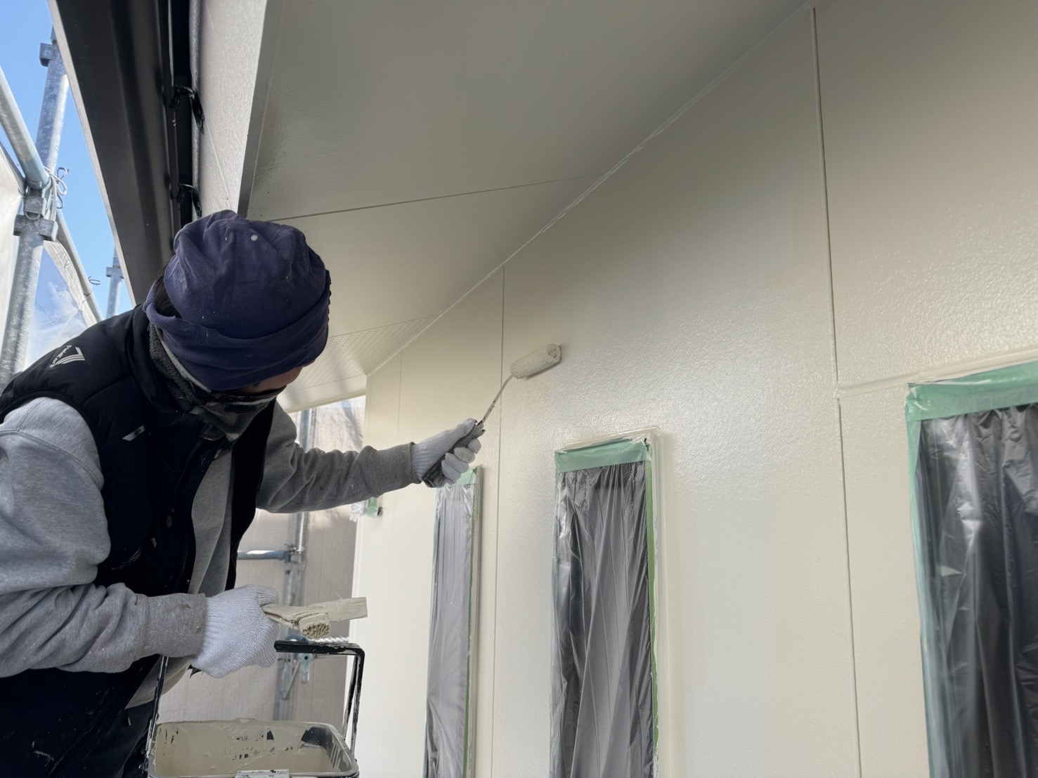 続いては、外壁や軒裏などの塗装をしていきます。