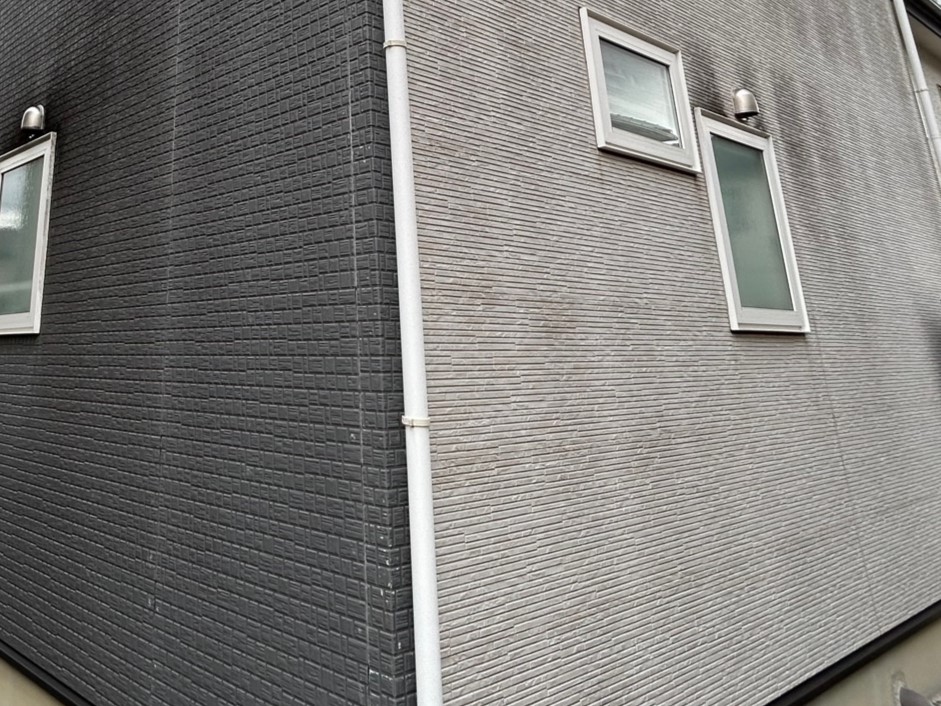 外壁は、以下の写真のように剥がれや色褪せが目立ってきており、汚れも付着している状態で、屋根も同様で塗装をおすすめさせていただきました。お客様にご検討いただき、外壁と屋根の塗装を行うこととなりました。