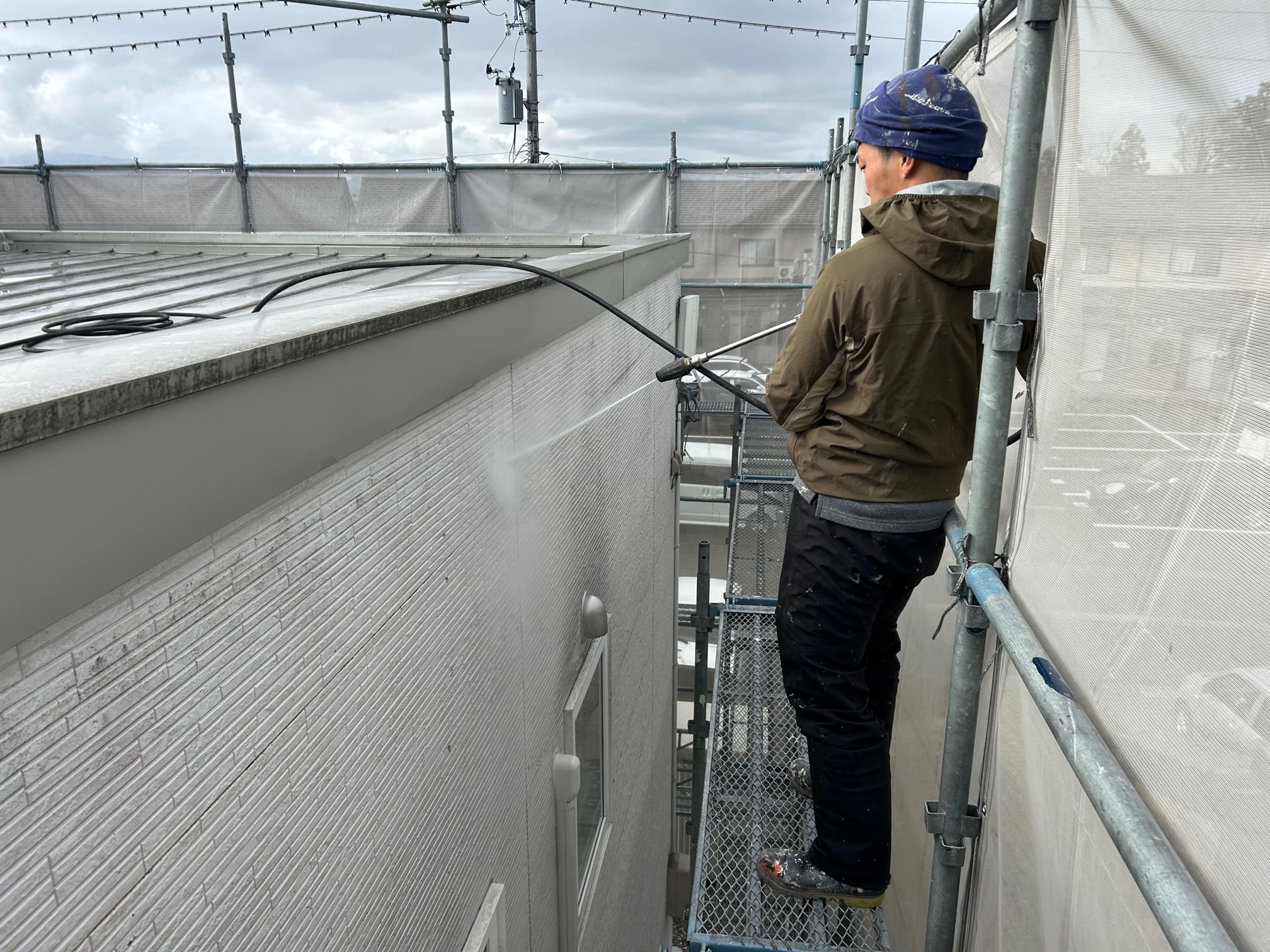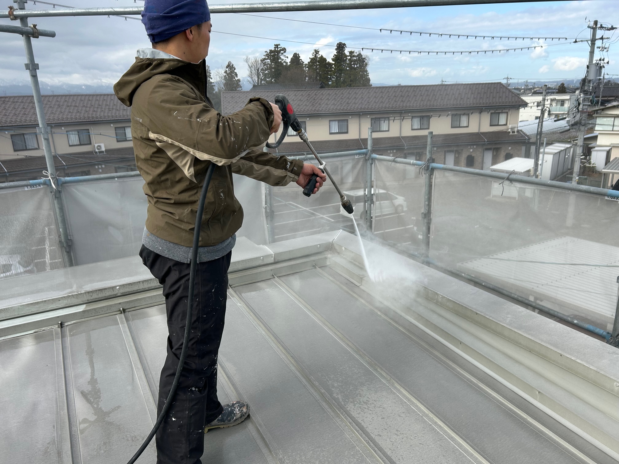 はじめに、高圧洗浄ですみずみまで汚れを取り除きます。