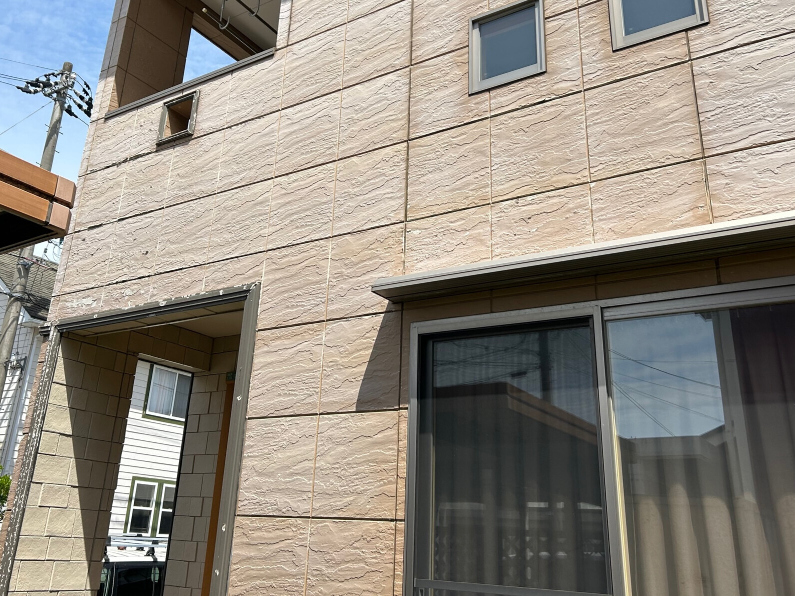 塗装のお見積もりをご依頼いただき、現地調査に伺いしました。全体的に色褪せが進んでいることが確認できます。