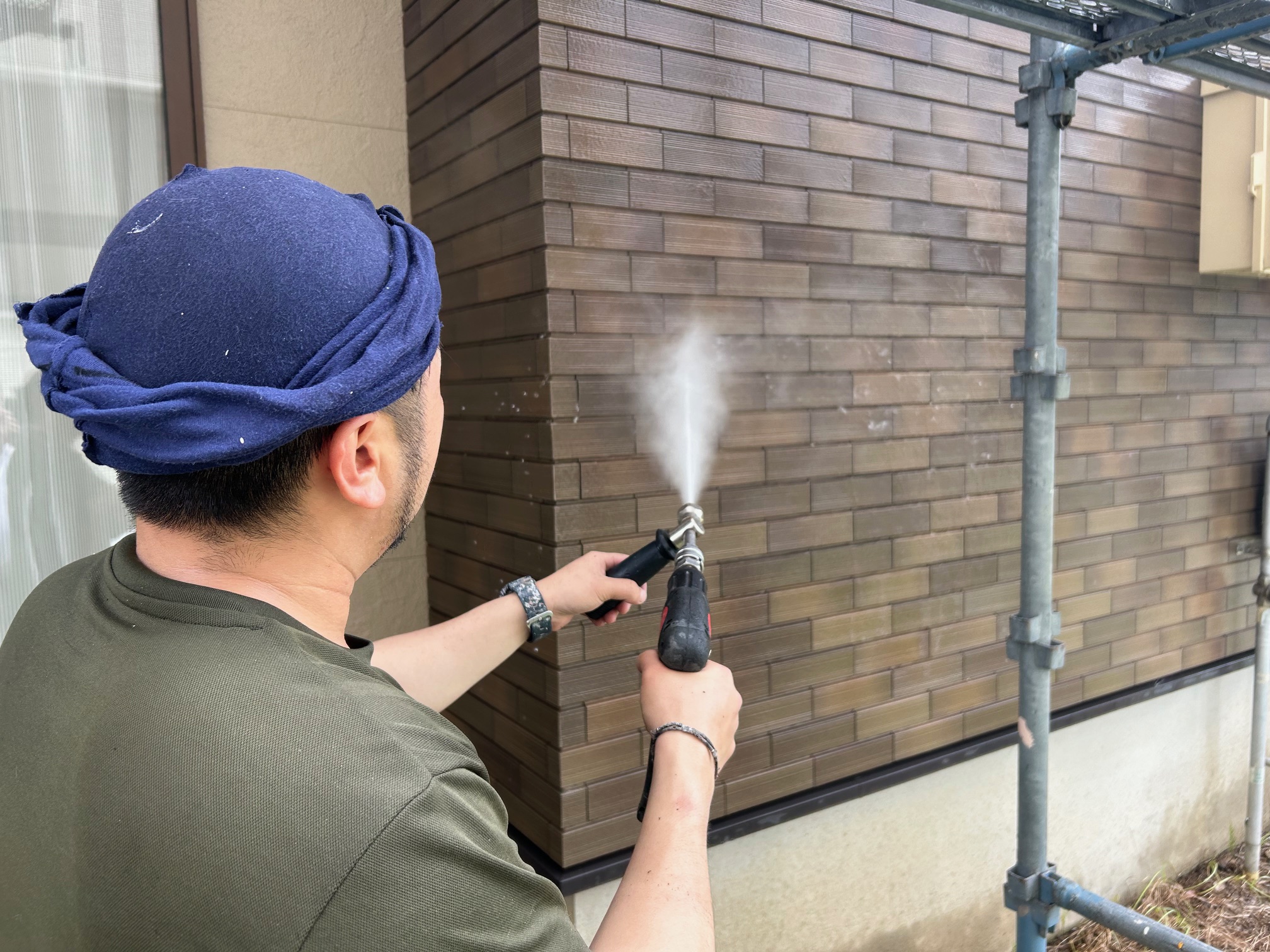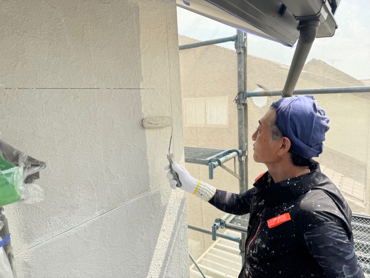 続いて、外壁のプライマー塗装をします。表にはでませんが、仕上がりを左右するため下塗りも丁寧に塗っていきます。