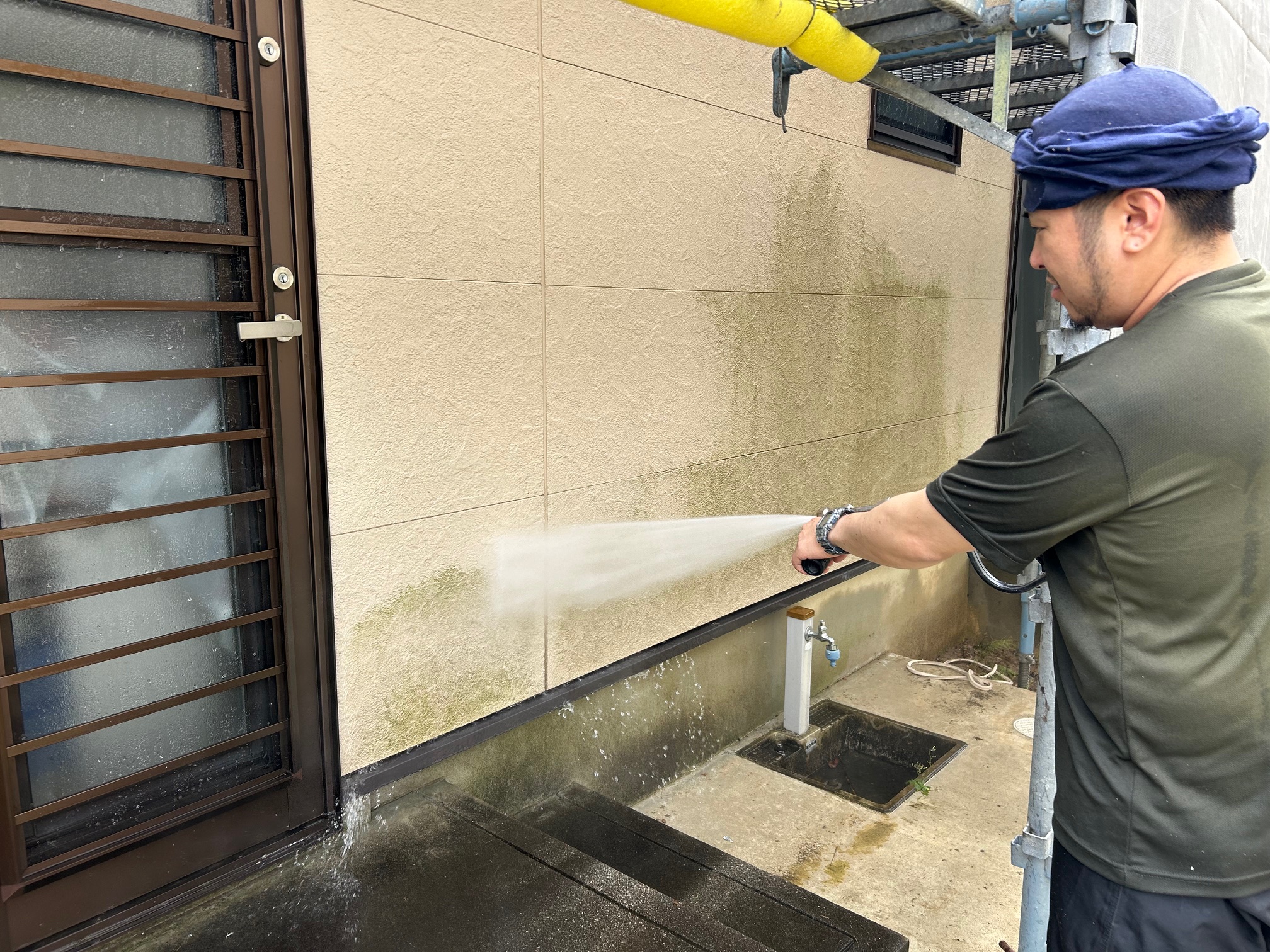 まずはじめに、高圧洗浄をして付着した汚れを落としていきます。