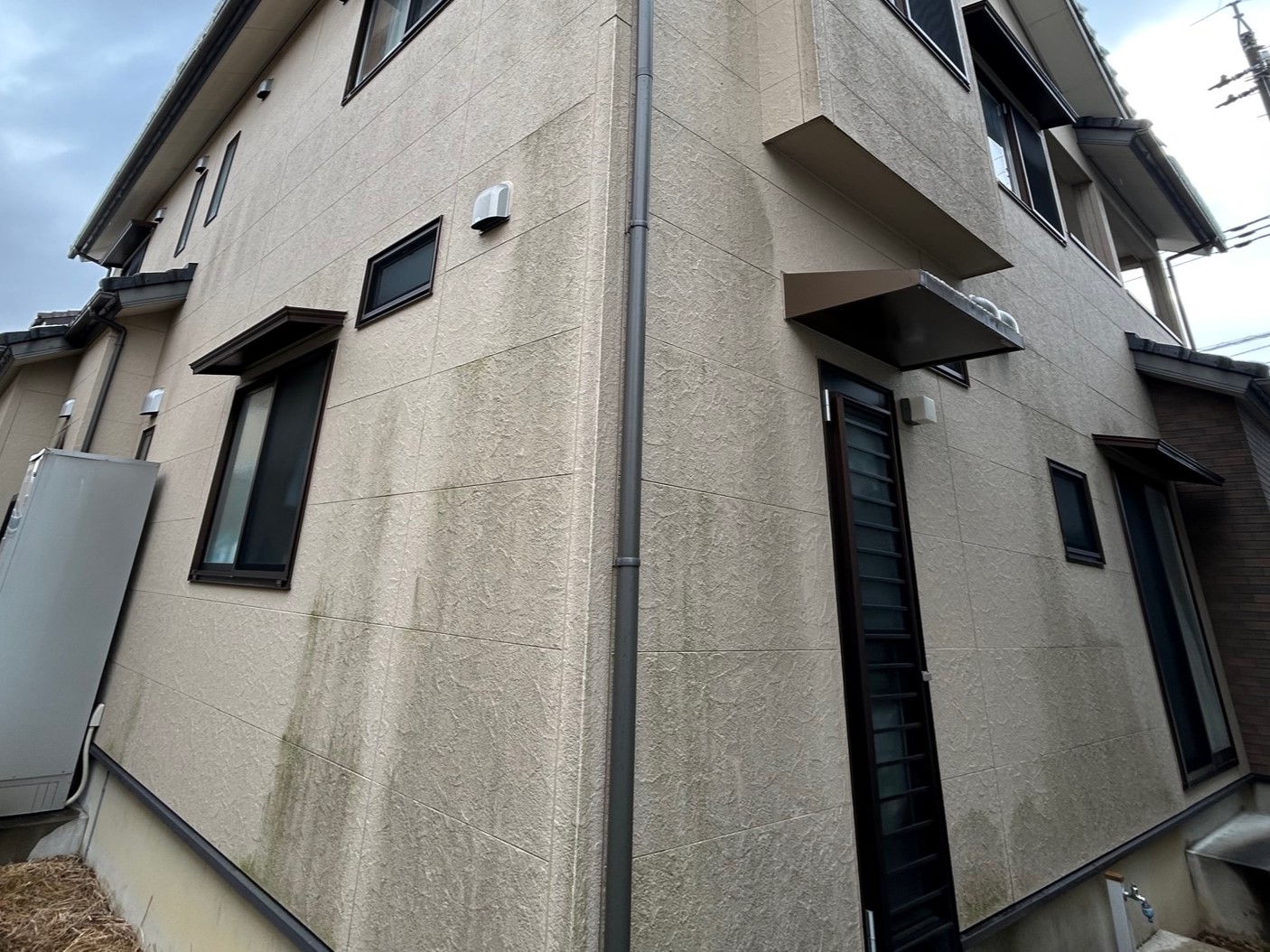 外壁のコケや藻、色あせが気になってきたとのことでお見積もりのご依頼をいただきました。