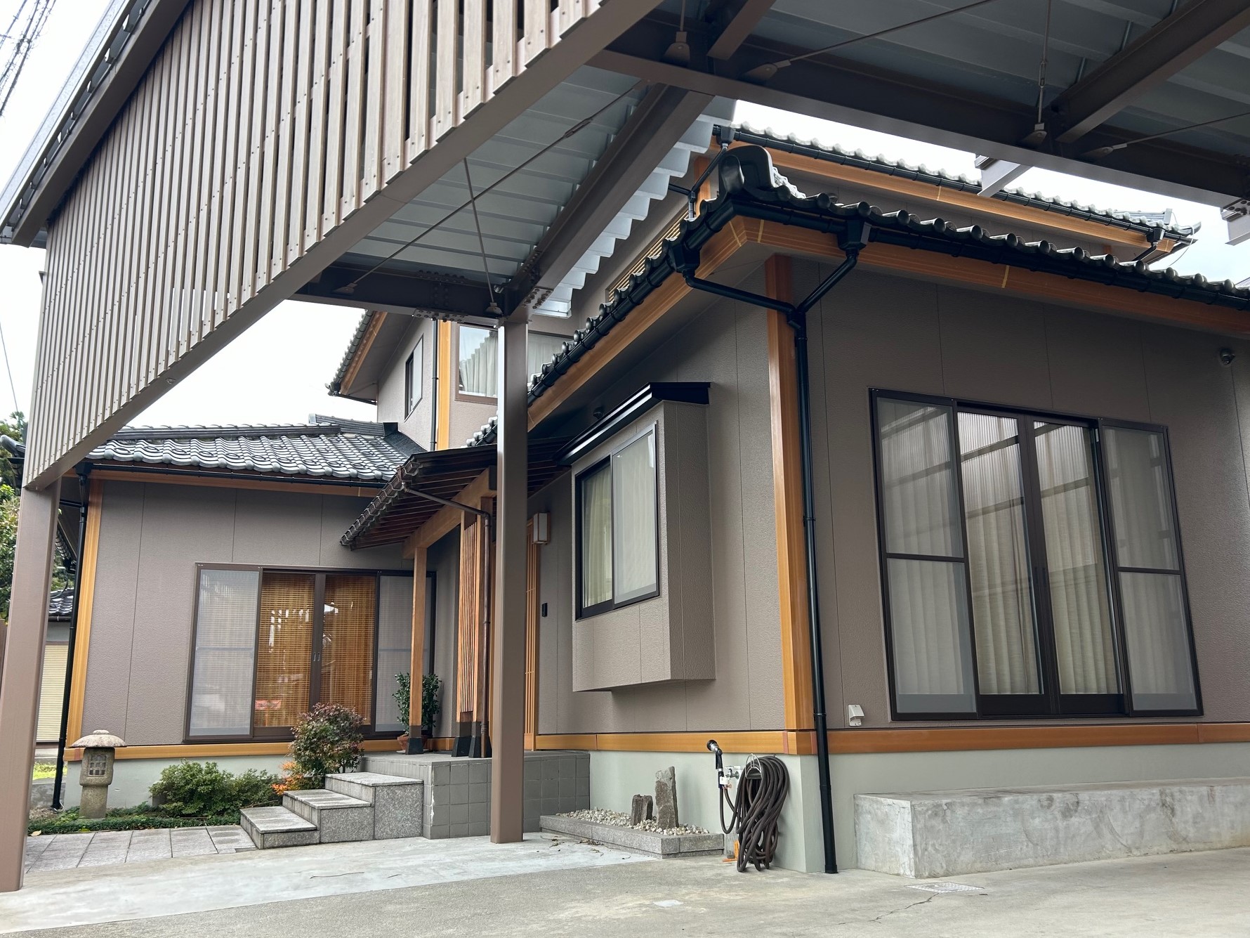 和風な雰囲気はそのままに、現代的なカラーでより一層おしゃれになりましたね。外壁の色と車庫の色はカラーシミュレーションを参考にご検討いただき、とてもマッチした組み合わせになっています!