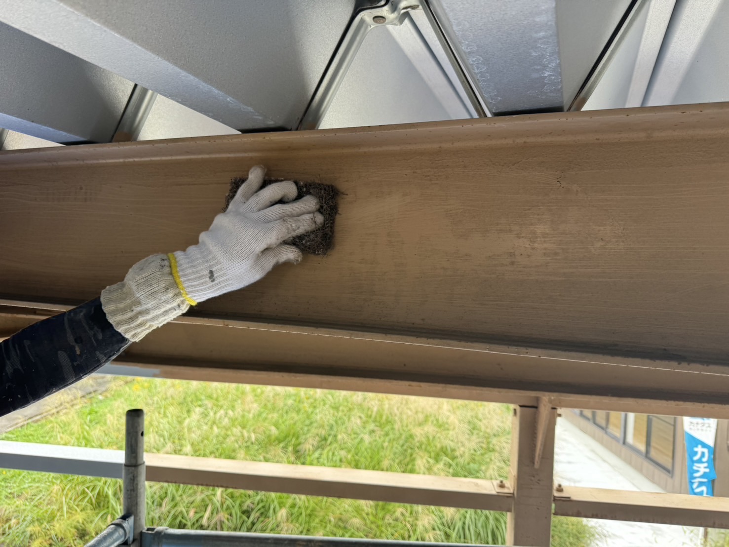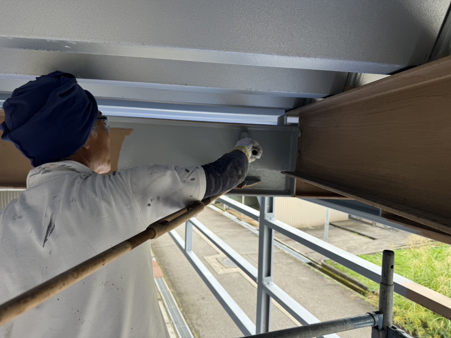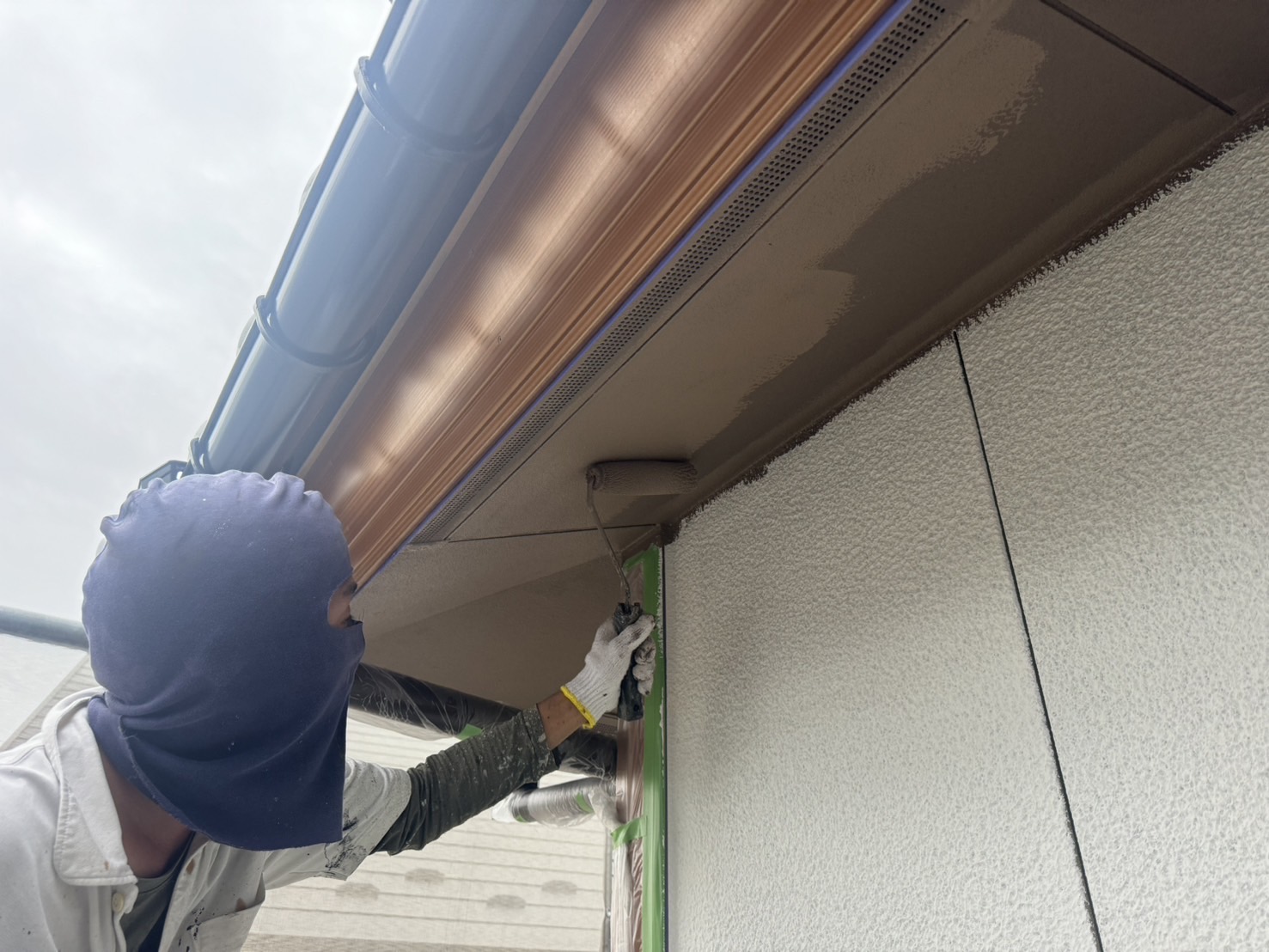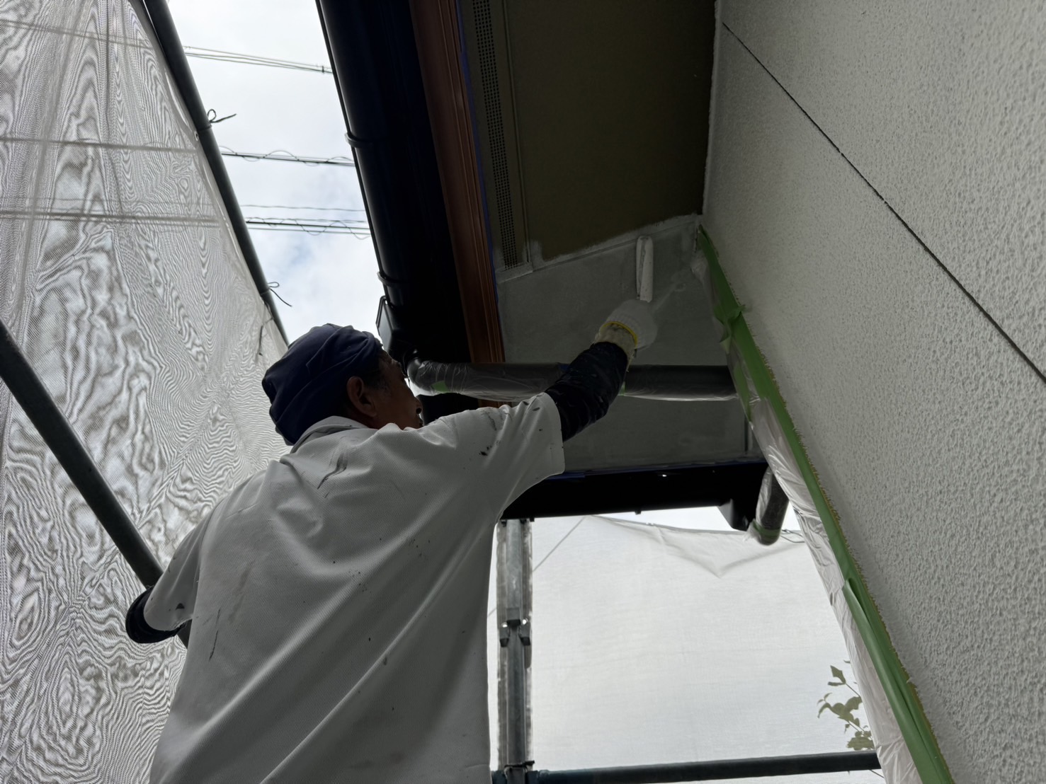 軒裏や雨樋などの付帯部分の塗装も同時に行います。