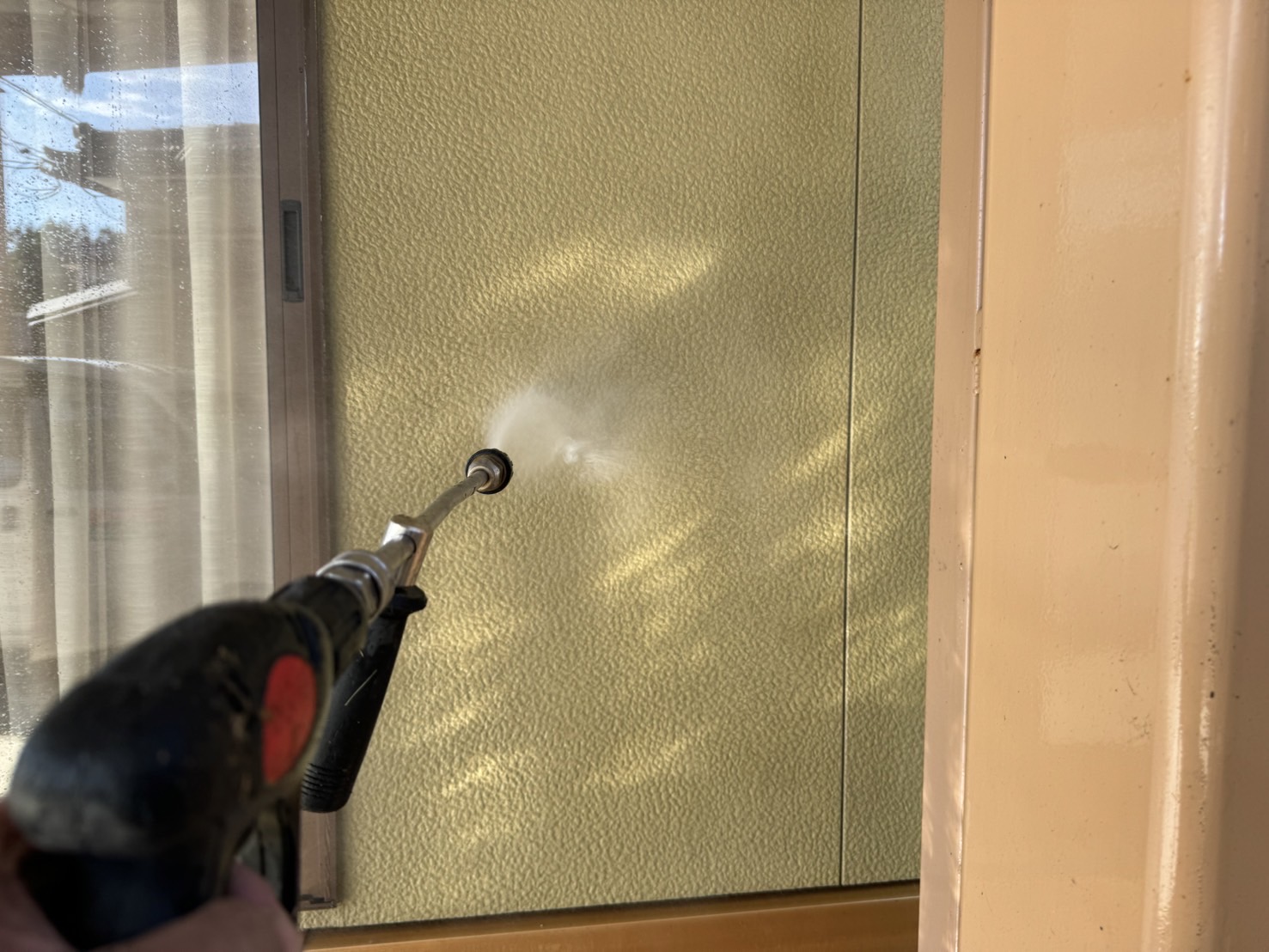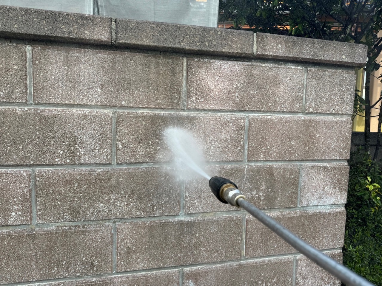 はじめに高圧洗浄を行い、汚れなどの付着物をすみずみまで落としていきます。