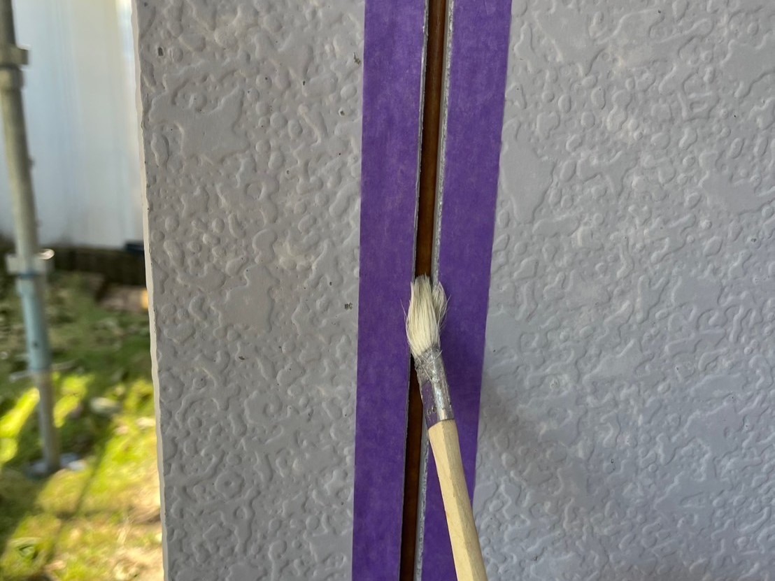 次に、プライマーを塗ります。プライマーはシールと建材を密着させ接着性を高める重要な役割を果たします。