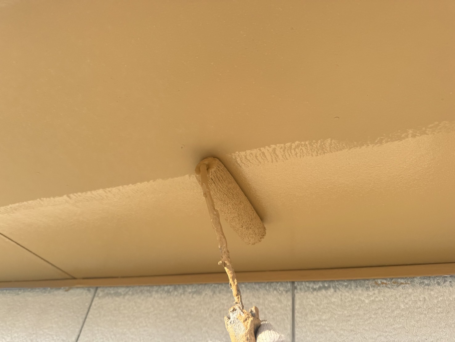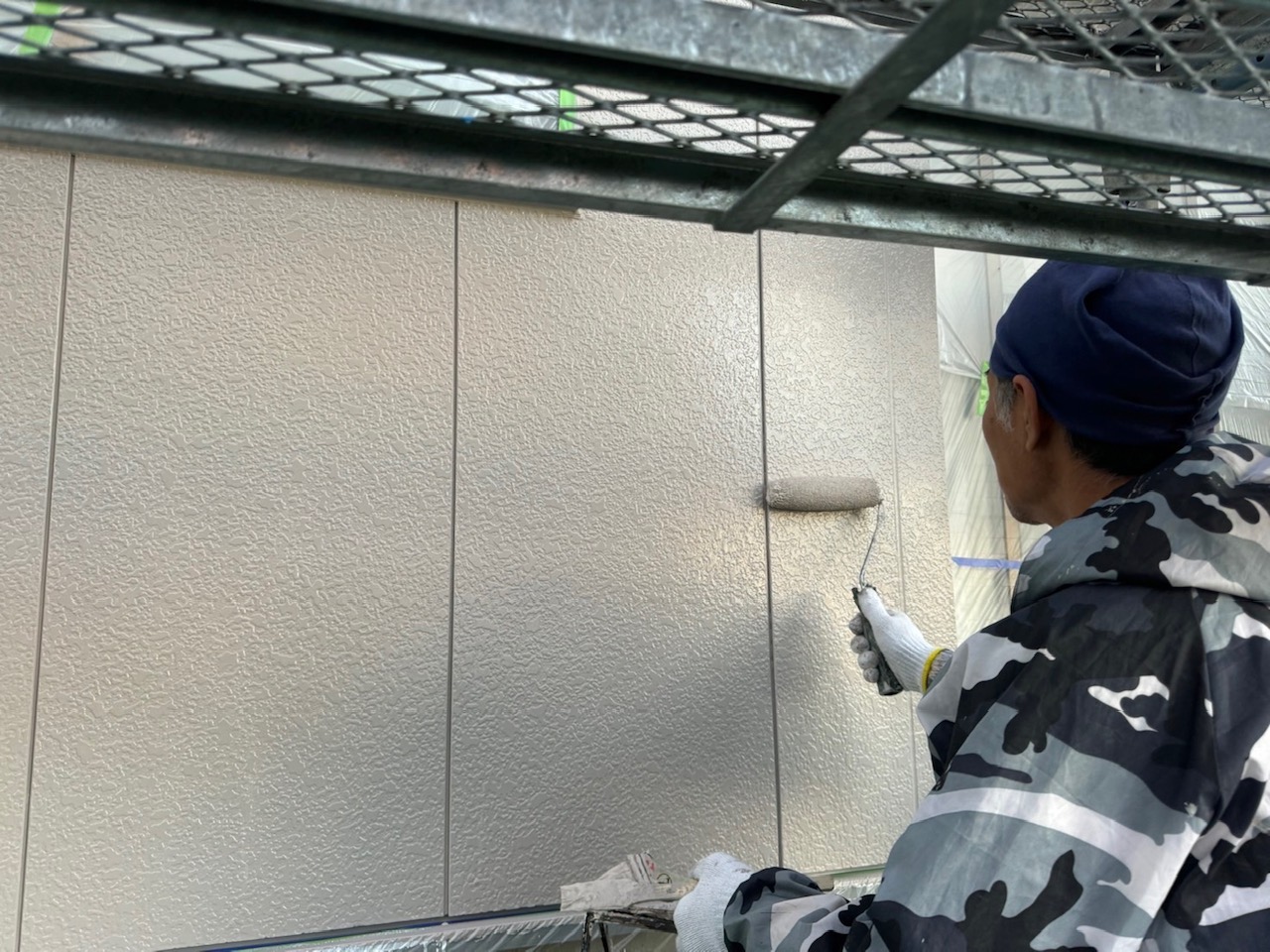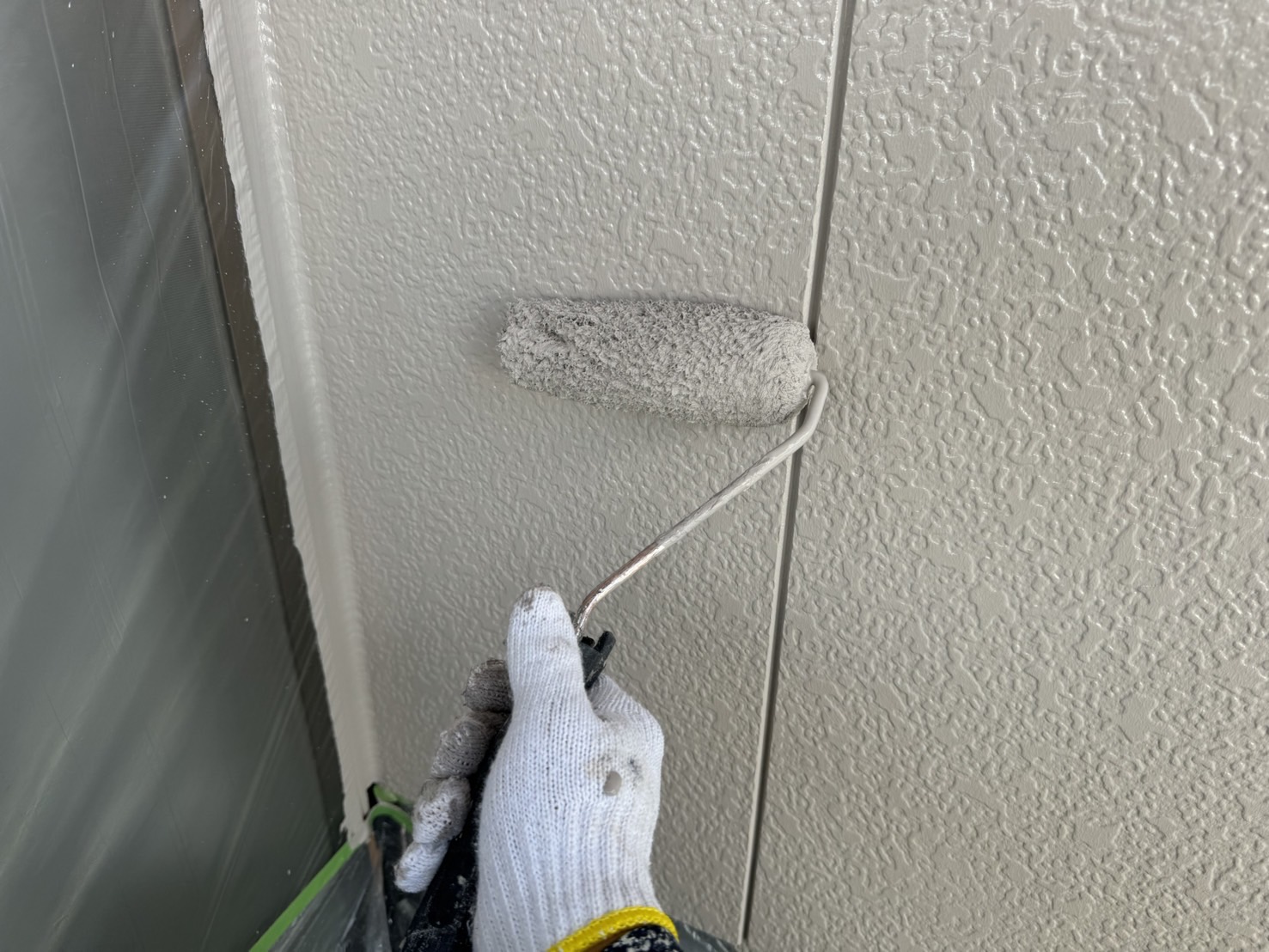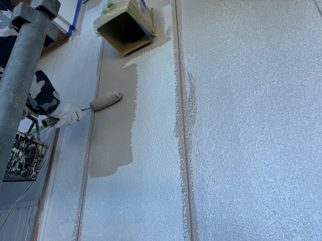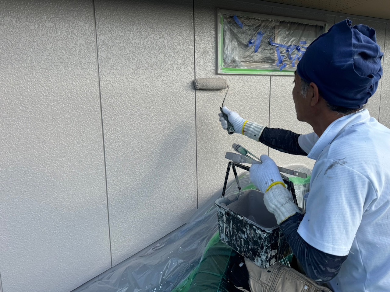 次は、外壁にプライマーを塗り、パーフェクトセラミックトップGを使用して中塗り塗装・上塗り塗装をします。