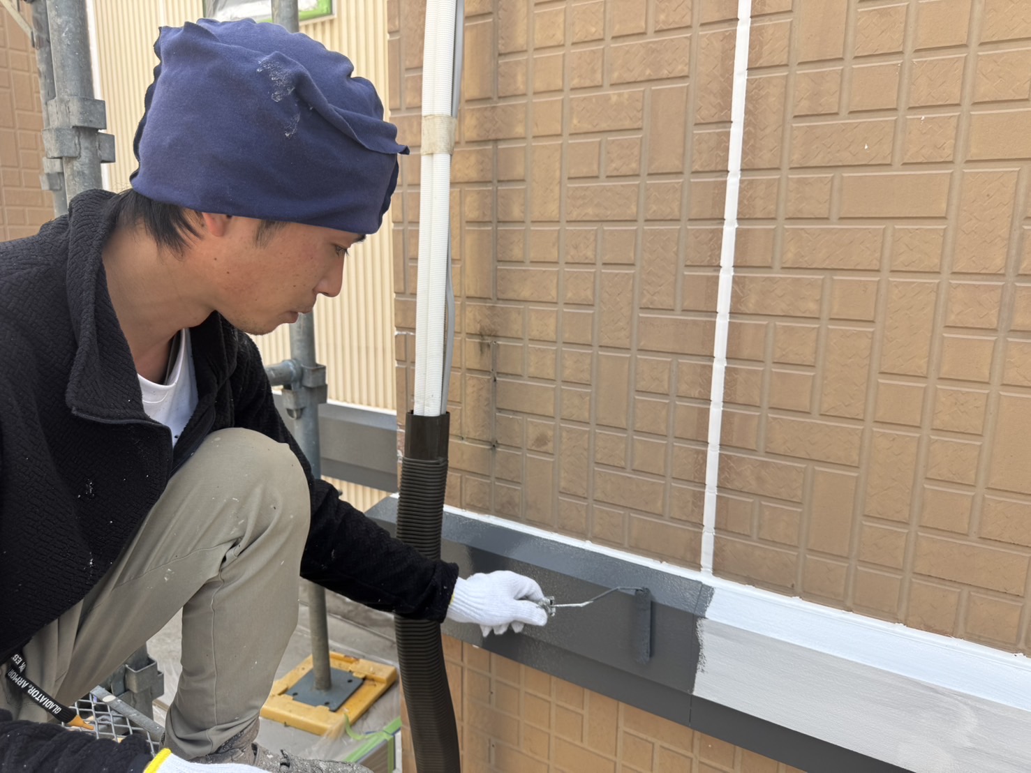 その後、外壁の下塗り塗装をします。プライマーを塗っていきます。