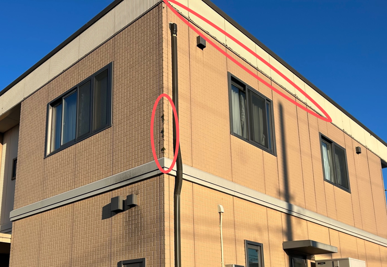 さらに、凍害により外壁に剥がれが見られました。凍害とは主に窯業系のサイディング壁材に起こる劣化症状のひとつで、寒冷地をはじめ気温が氷点下になる地域に起きる症状です❄