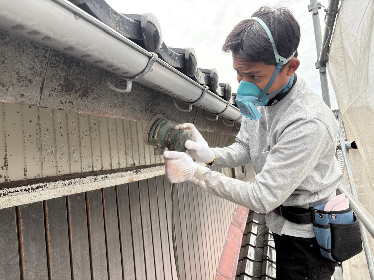 ケレンとは、新しい塗料を塗る前に行う下地処理のことで、古い塗膜の浮きやサビ等を徹底的に取り除き、塗装面をきれいに整える作業です。