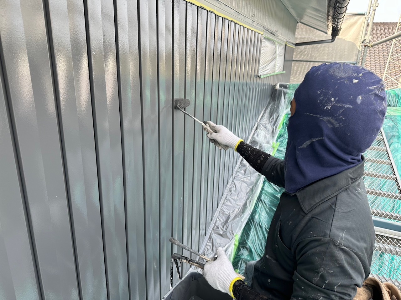 次に、1液ファインフッソUVを用いて中塗り・上塗り塗装をしていきます。