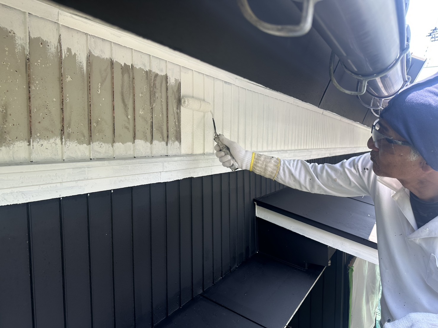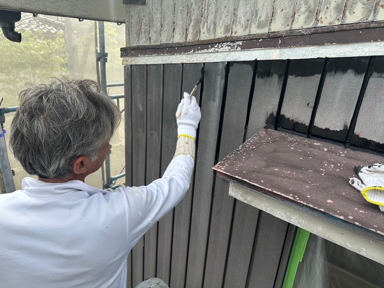 軒裏・破風板などの付帯部分も同じようにエポキシプライマーを塗ります。