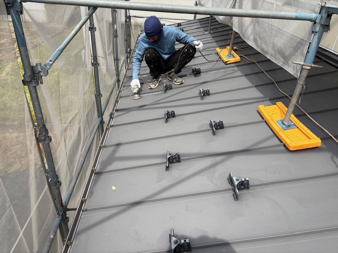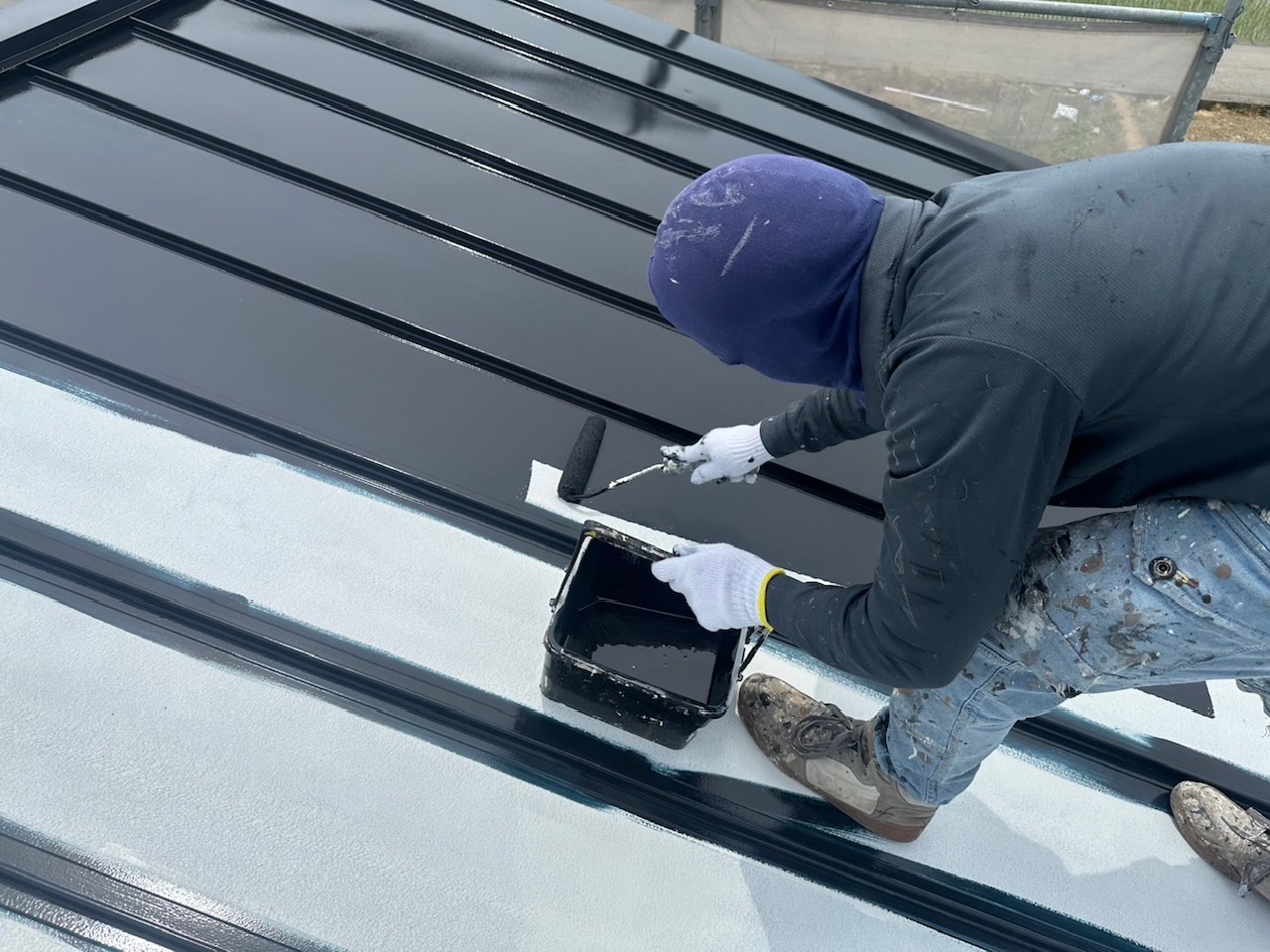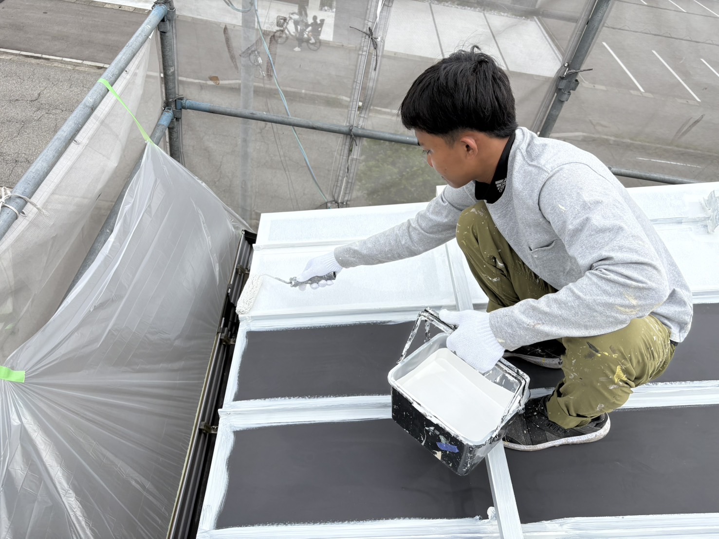 次は、プライマーを塗ります。棟や雪止めなど細かい部分も丁寧に塗っていきます!