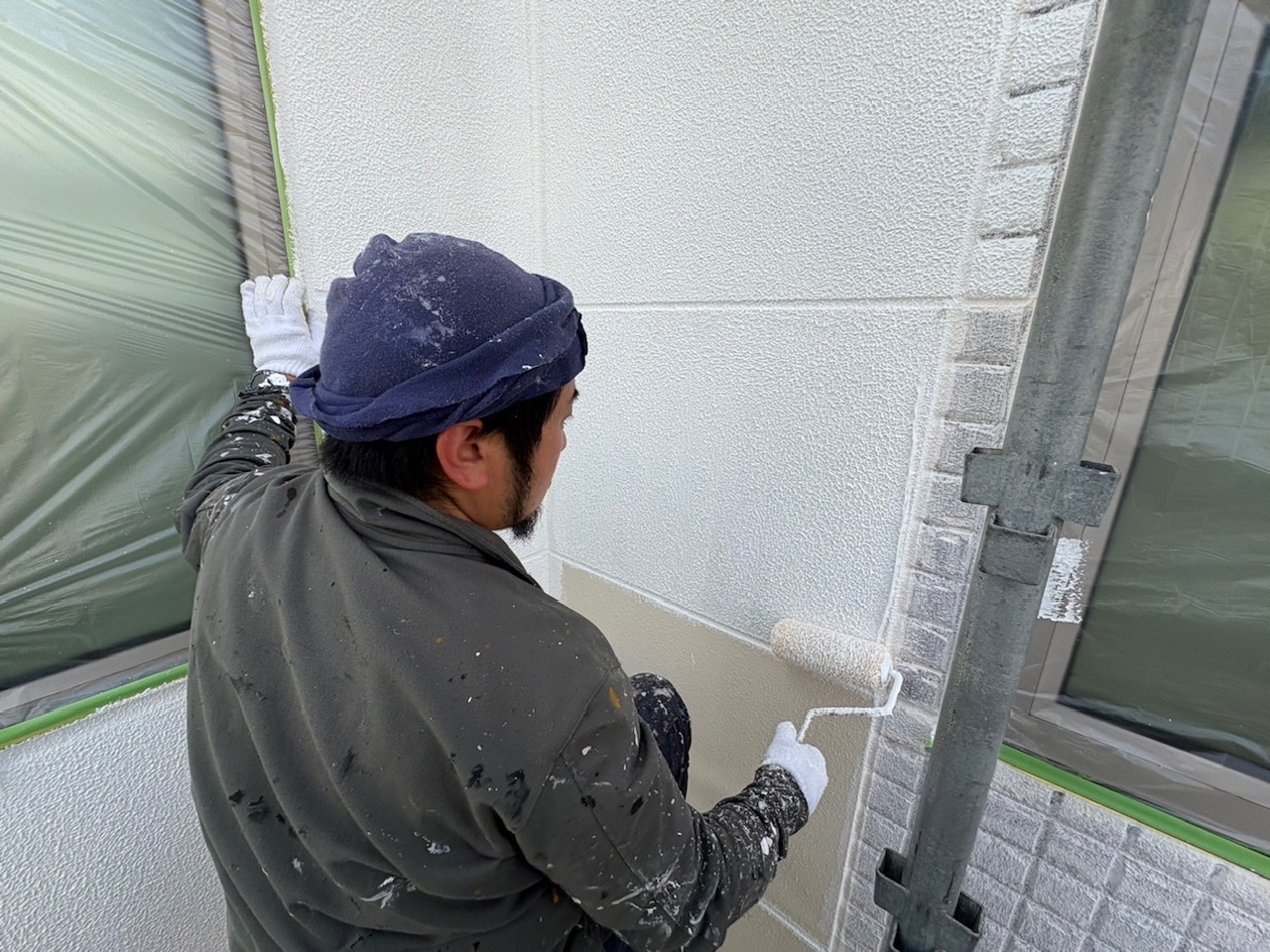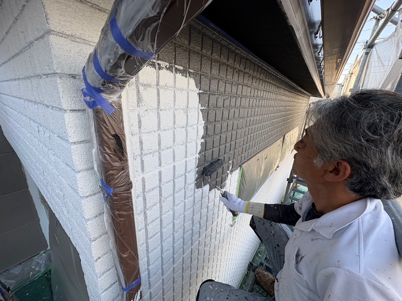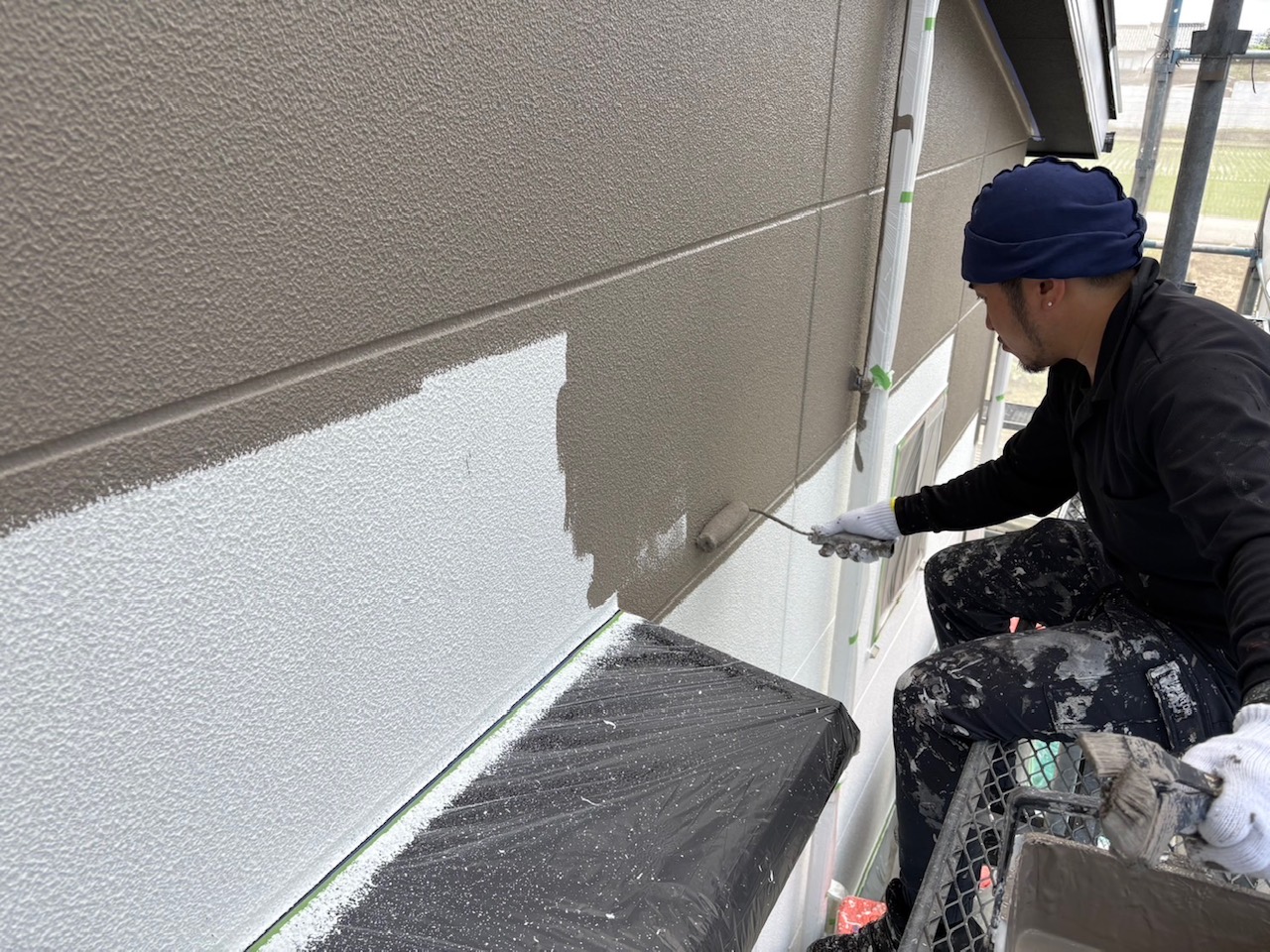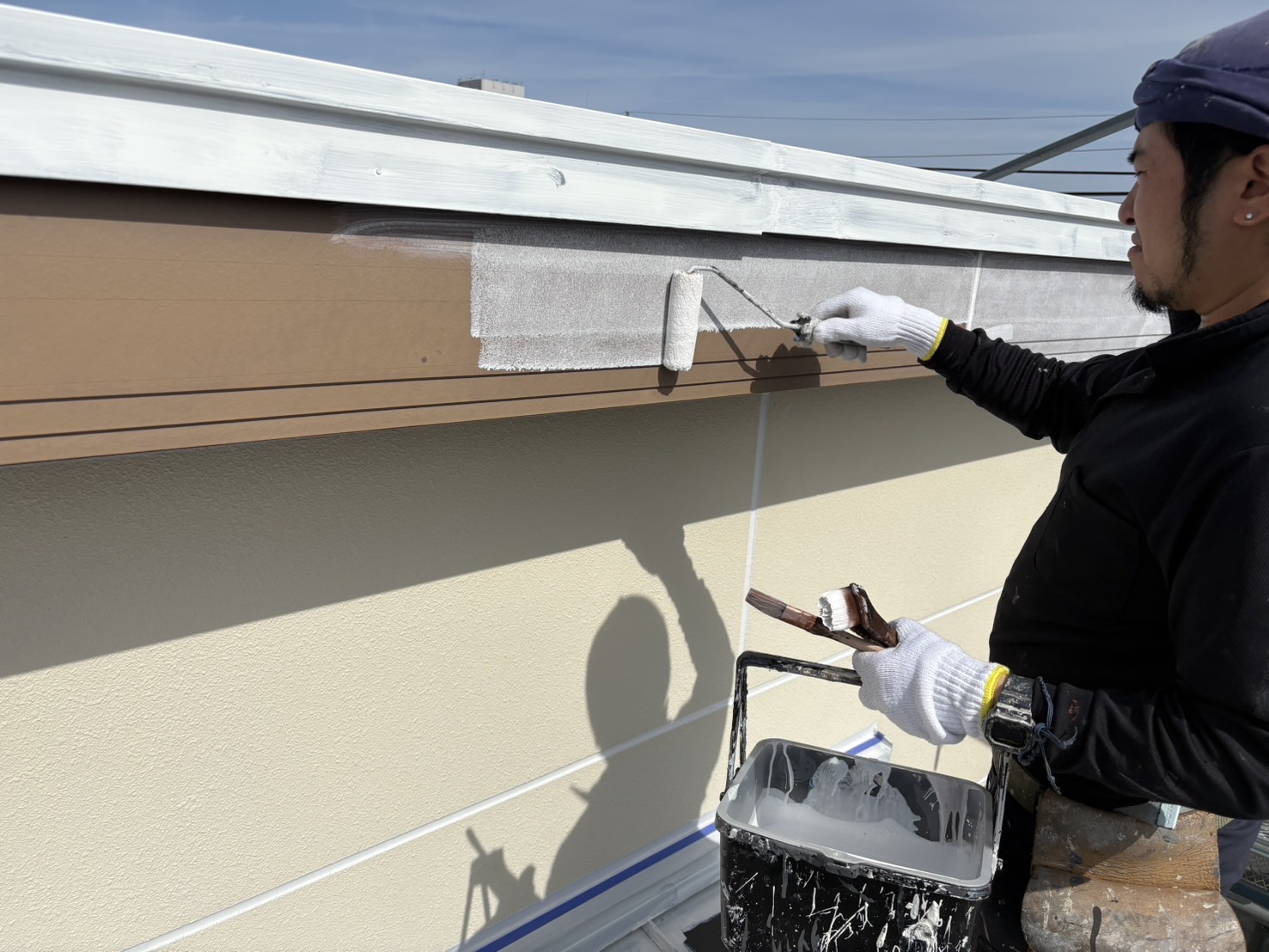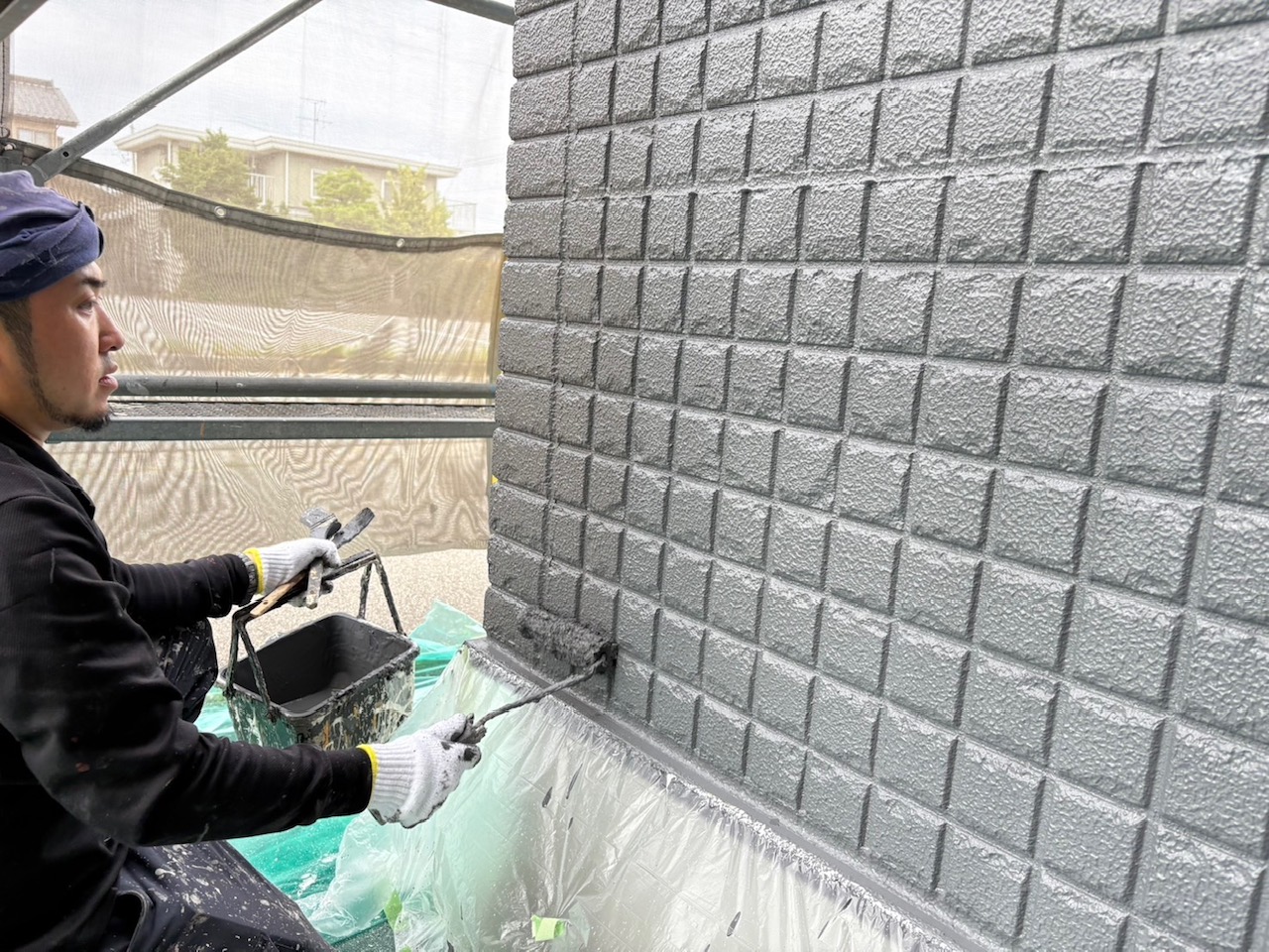 次に、グランセラベスト2液ファイン 遮熱を使用して中塗り塗装・上塗り塗装をします。