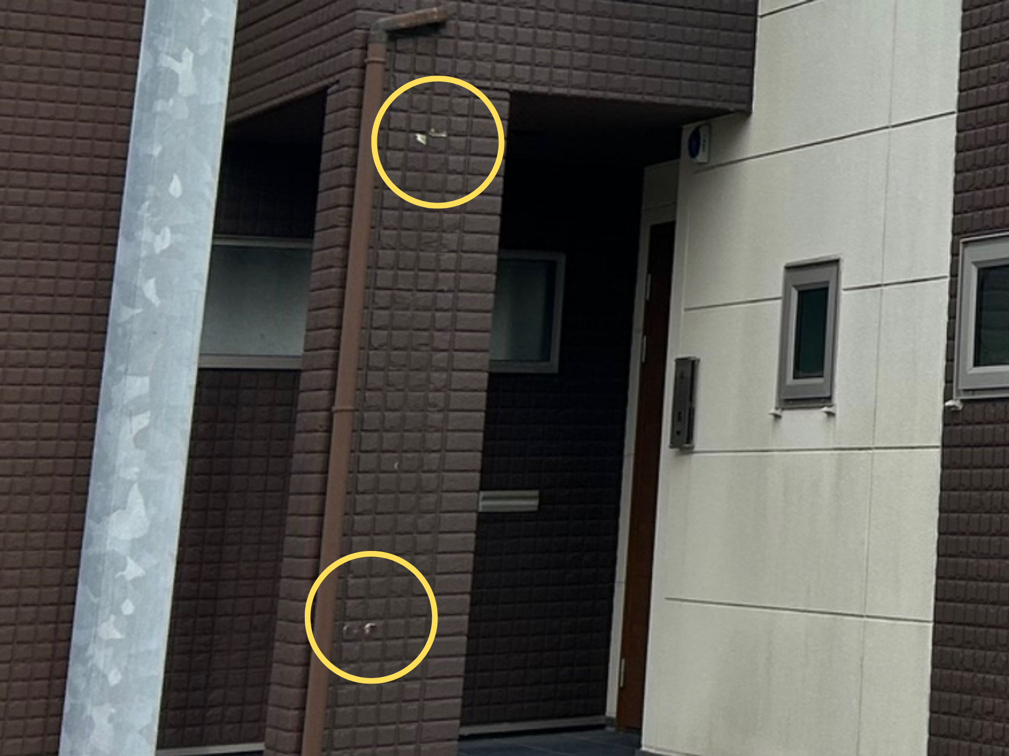 現地調査にお伺いしたところ、特に色の薄い部分の黒ずみ・汚れが目立ち、所々剥がれもみられました。