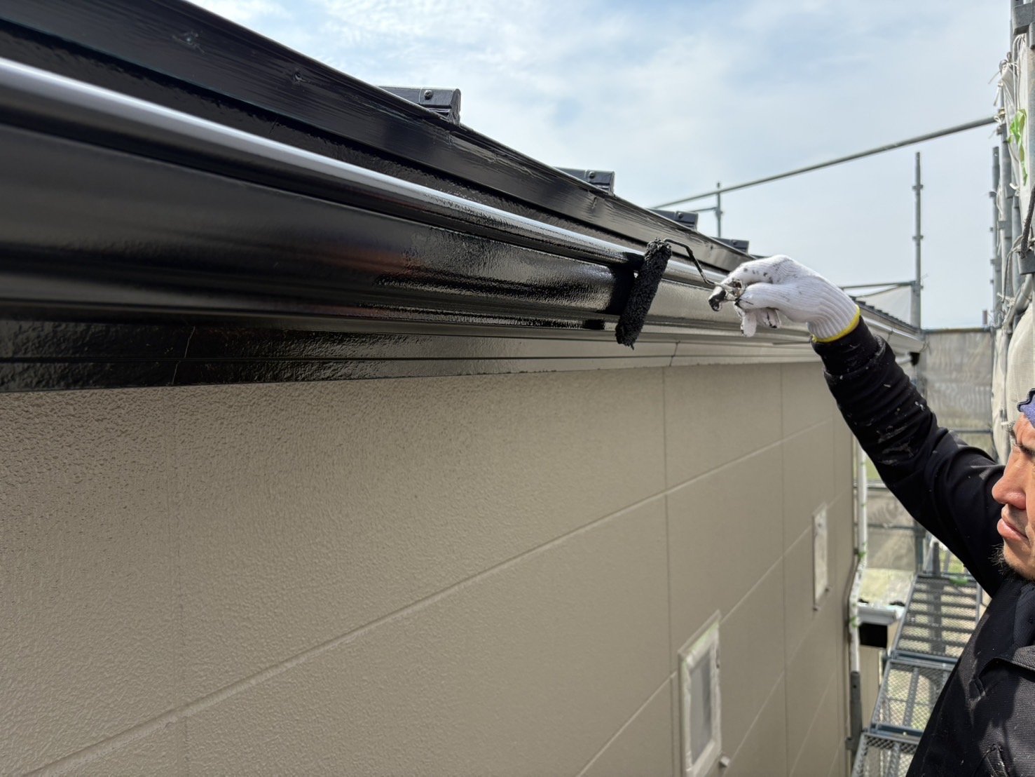 雨樋はファインパーフェクトトップを2回塗りしていきます。