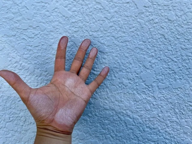 外壁を手でなでて白い粉がついたら「チョーキング」と呼ばれる劣化現象です。塗膜の防水性が低下しているサインで、雨水が外壁に染み込みやすくなっている可能性があります。
