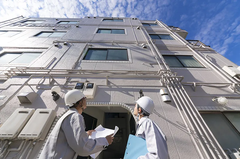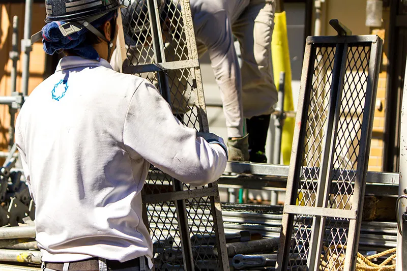 工事を安全かつ円滑に進めるためには、足場を適正に組み立てること、養生や飛沫防止シートを隅々まで施すことが重要です。また、塗料の飛び散りなどのトラブル防止にも努めます。屋外での作業が中心となりますが、悪天候の中でも安全第一で進め、お客様にご迷惑をかけないよう十分に注意を払います。近所への塗料の飛び散りを防ぐため、天候により塗装を中止することもあります。それ故に、当初予定していた後期よりも大幅に伸びてしまう事がないようにあらかじめ余裕を持った工程で外壁塗装に挑みますし、仮に竣工予定日よりも後ろ倒しになってしまったとしても別途で追加費用が掛かるとことはありませんのでご安心ください。